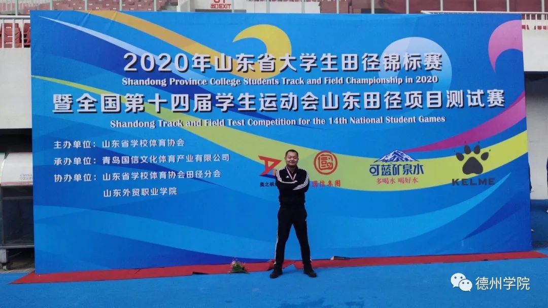 10月10日,2020年山东省大学生田径锦标赛在青岛落下帷幕,我校18级行政管理专业刘宝玉同学获得了铁饼冠军及“优秀运动员”称号。