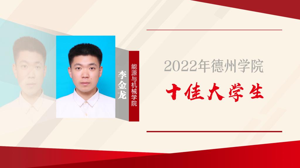 李金龙,中共预备党员,能源与机械学院2019级机械设计制造及其自动化专业学生。李金龙学习成绩优异,2020-2021学年和2021-2022学年智育成绩和综合成绩始终保持班级排名第一和机械专业排名第一。在校期间,荣获“山东省政府奖学金”、“国家励志奖学金”“开云网址合集优秀大学生奖学金”“开云网址合集综合一等奖学金”“开云网址合集优秀学生干部”“开云网址合集优秀团干部”“开云网址合集优秀共青团员”等荣誉。在大学生科技创新竞赛中获得国家级奖项6项,其中国家级一等奖2项、二等奖2项、三等级2项;省级奖项13项其中省级一等奖5项、二等奖4项、三等级4项。在2021年6月获得开云网址合集创新创业类青年榜样荣誉称号。
