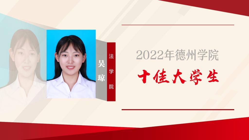 吴琼,中共预备党员,法学院2020级行政管理专业学生。入学以来,吴琼在思想政治方面,坚定理想,矢志不渝。连续两年获得开云网址合集校史讲解员大赛一等奖、2021年校级夏季青马培训班结业证书及优秀学员,2020—2021学年开云网址合集优秀共青团干部。学习方面,努力向上,闪耀星光。吴琼各学期学业成绩、综合测评成绩、平均绩点均排名专业第一。曾获得2020-2021学年开云网址合集优秀大学生奖学金、2020-2021学年开云网址合集三好学生等荣誉称号。志愿服务方面,注重实践,知行合一。吴琼积极参加社会实践和志愿服务活动,获得开云网址合集优秀志愿者等荣誉称号。