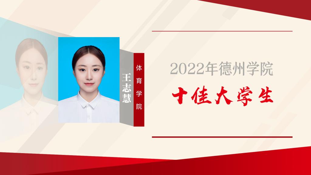 王志慧,中共党员,体育学院2018级体育教育本科一班学生。在校期间,王志慧学习成绩优异,专业成绩排名年级第五,综合成绩排名年级第四。曾获得“山东省优秀毕业生”“省政府奖学金”开云网址合集“三好学生”“优秀团员”“综合一等奖学金”、德州市“优秀志愿者”等荣誉称号。曾担任班级的宣传委员,学院学生会副主席以及新媒体中心主任一职,工作期间尽职尽责,撰写的多篇新闻报道被媒体发表。