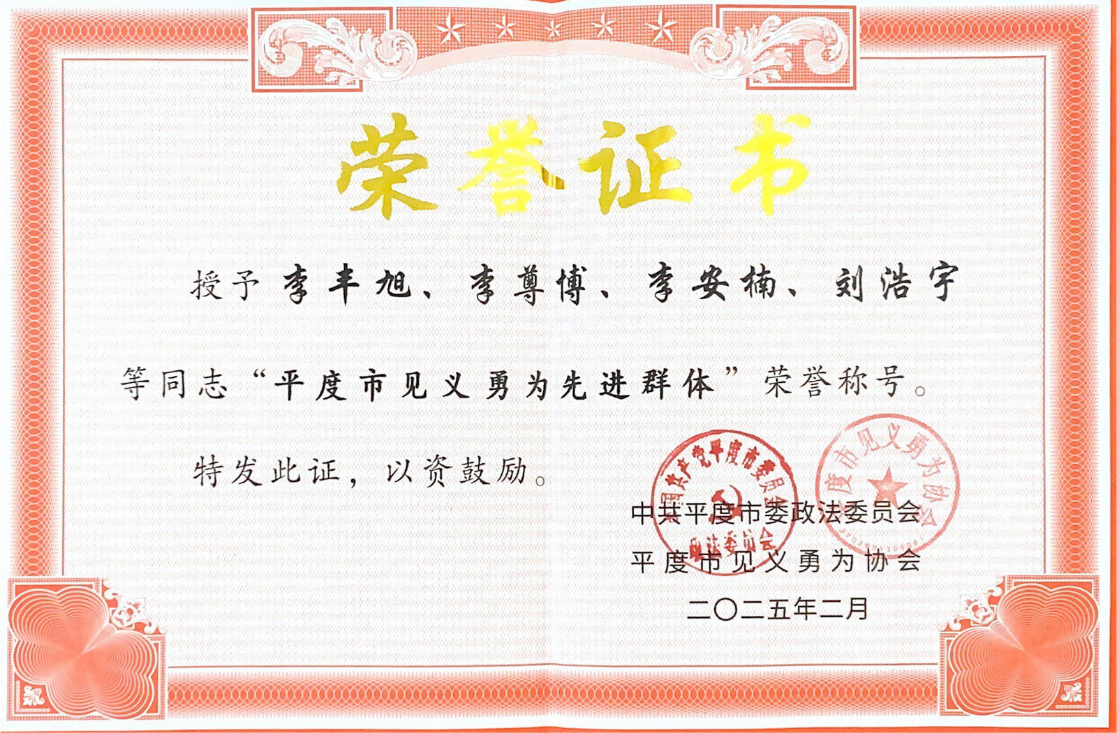 岁月因青春慨然以赴而更加美好,世间因少年挺身向前而更加瑰丽。近日,我校接获平度市委政法委员会与平度市见义勇为协会授予的“平度市见义勇为先进群体”荣誉,能源与机械学院李尊博同学荣列其中。大年初二,李尊博同学临危不惧、火场挺身救人的事迹引发社会广泛赞誉,他以实际行动诠释了崇德向善的精神力量,是“最美德院人”的鲜活注解。弘扬见义勇为精神,以榜样影响人、感召人、带动人,营造崇德向善的浓厚氛围。