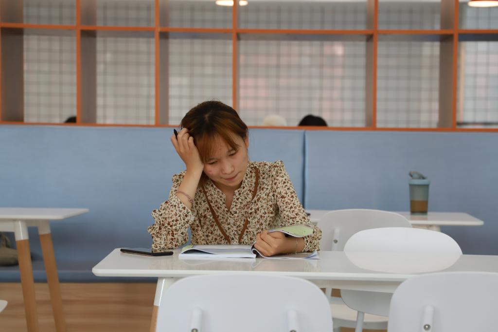 在学校图书馆、教学楼、教室里、走廊里、草坪上看到许多学生正在认真学习,学习氛围很浓,漫步校园随处可见朗读、背诵、学习的学生。