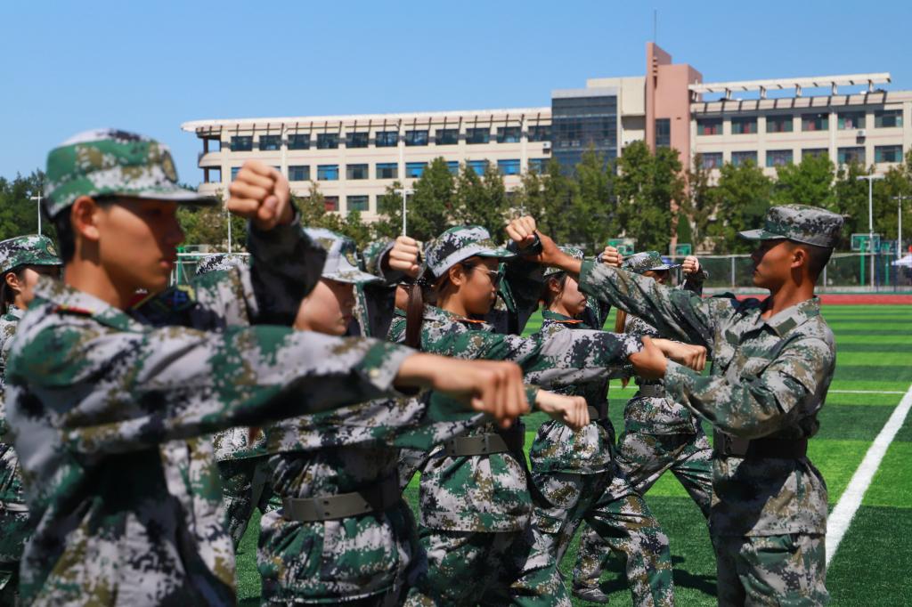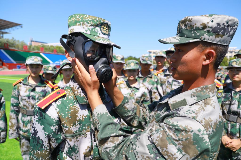 9月13日,开云网址合集校园内,大学生正在学习佩戴防毒面具。当日,开云足球电子盘组织新生进行核生化防护、捕俘拳、队列、国防主题的知识竞赛等具有实用性和趣味性的军事技能和素质拓展训练科目。大学生通过军训可以磨炼意志、强健体魄,增强国防意识和纪律意识,培养团结协作精神。