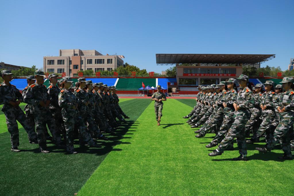9月13日,开云足球电子盘校园内,教官李淑雯(中)正在进行正步分解练习。