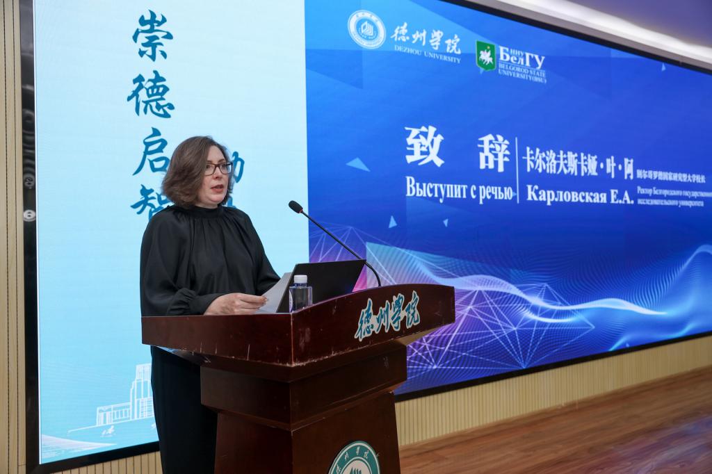 卡尔洛夫斯卡娅校长在致辞中回顾了两校的合作历程,高度评价了在化学、生物学、食品质量与安全、生物技术等领域的育人成效,为两校教育交流与合作的高质量发展奠定了坚实基础,希望两校能够继续拓展更多领域合作,共同书写两校发展新篇章。