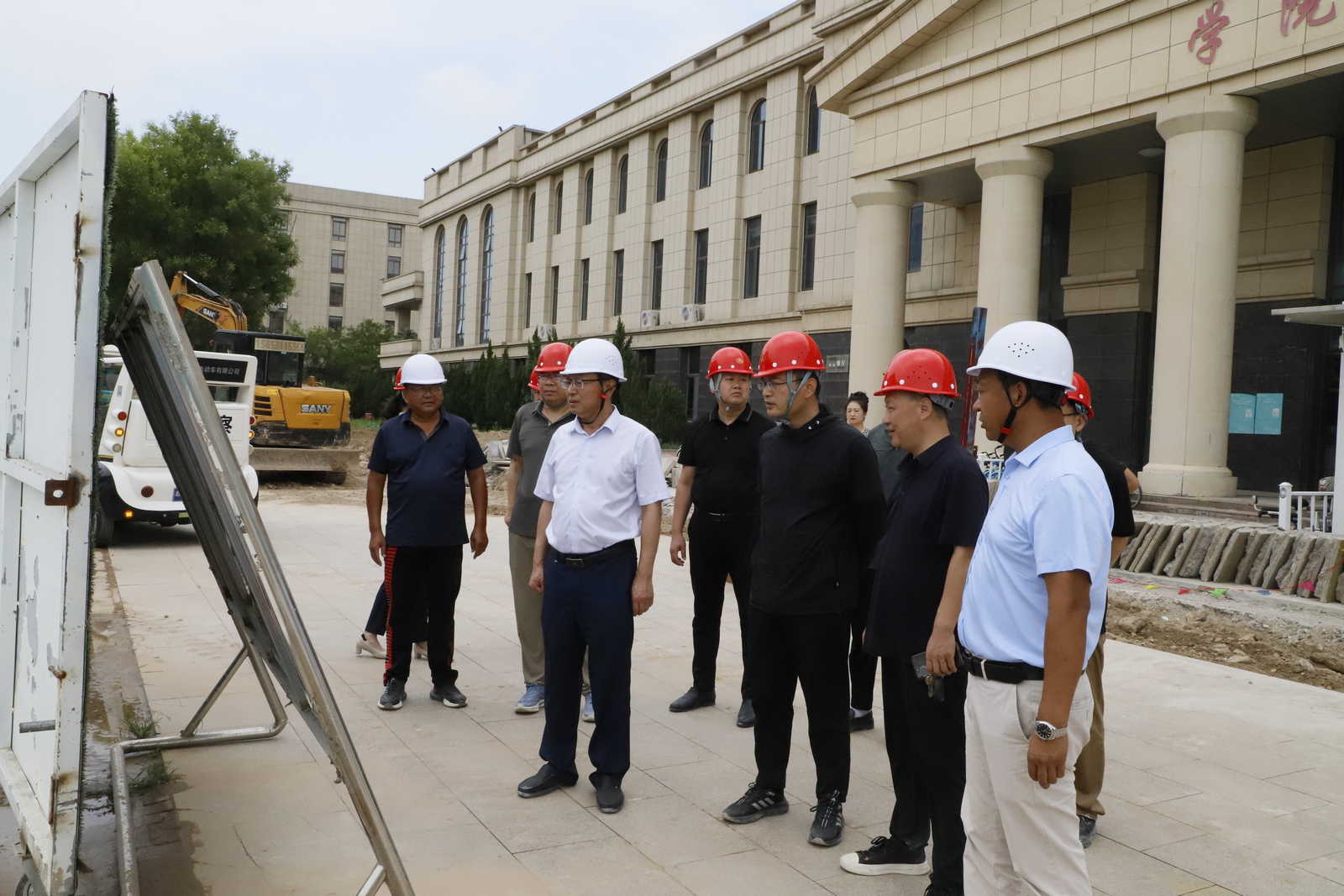 7月29日,校党委书记吴君,党委副书记、校长赵长林带队深入学生公寓改造施工现场调研进展情况,督导工程施工,并慰问暑期坚守科研岗位的师生,党委委员、副校长蒋涛涛参加。
