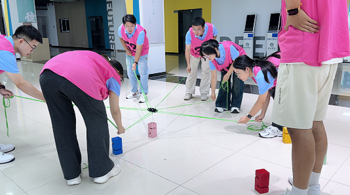 培训课程内容丰富多元,涵盖团队协作拓展与职业心理建设等多个关键领域。体育学院教师李献震、马红霞则通过一系列的拓展训练项目,如达·芬奇密码、盲人方阵、不倒森林等,让新员工在实践中切实提升团队协作能力、沟通技巧与应变能力。
