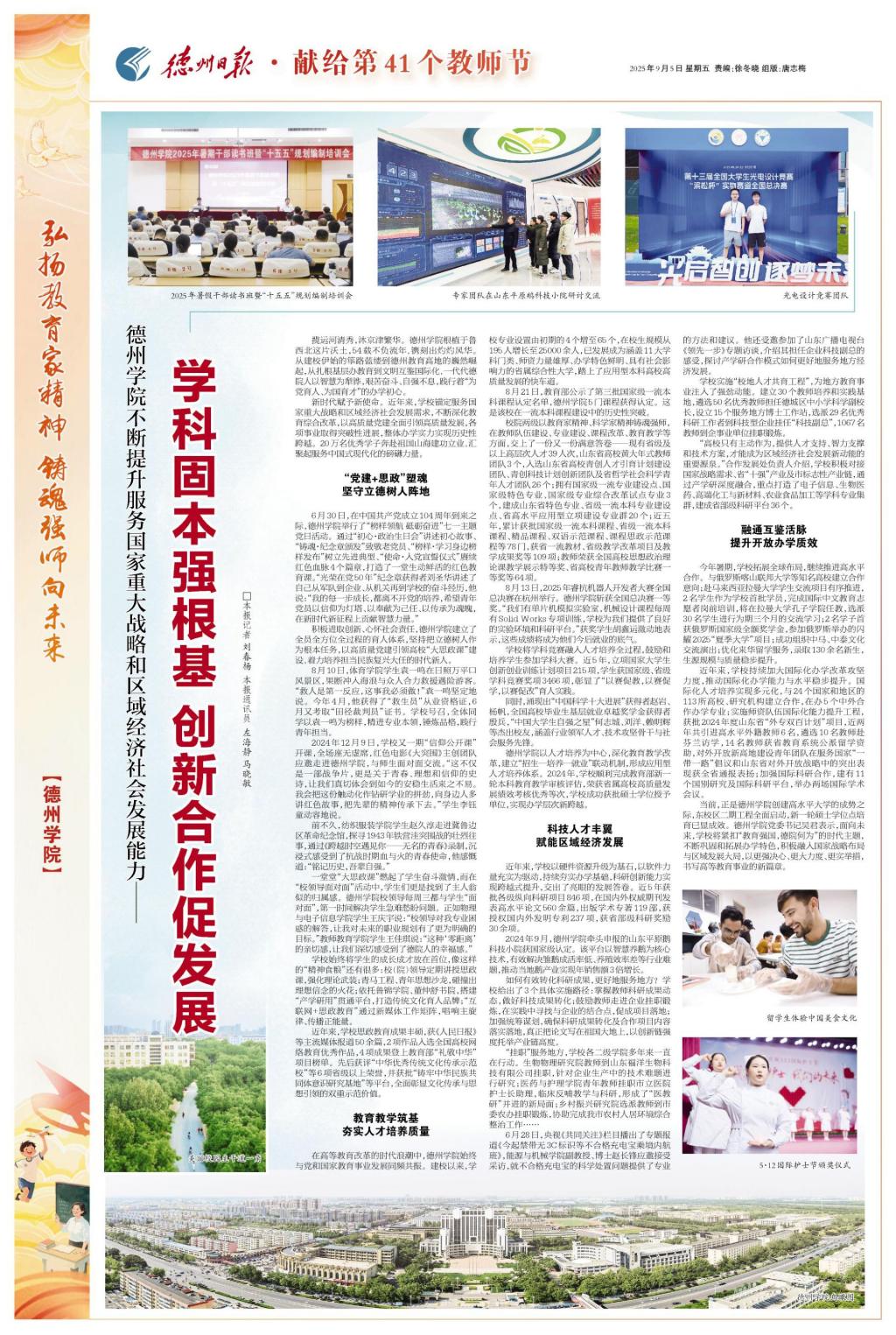 揽运河清秀,沐京津繁华。开云网址合集根植于鲁西北这片沃土,54载不负流年,镌刻出灼灼风华。从建校伊始的筚路蓝缕到德州高等教育高地的巍然崛起,从扎根基层办教育到文明互鉴国际化,一代代德院人以智慧为犁铧,艰苦奋斗、自强不息,践行着“为党育人、为国育才”的办学初心。