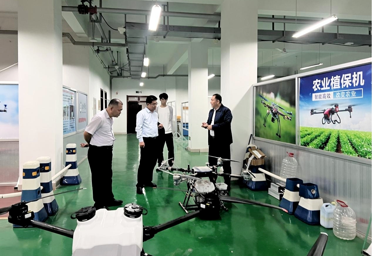 会后,曹炳阳参观了无人机校企联合共建实验室,对实验室建设、研究方向及应用发展提出了指导建议。