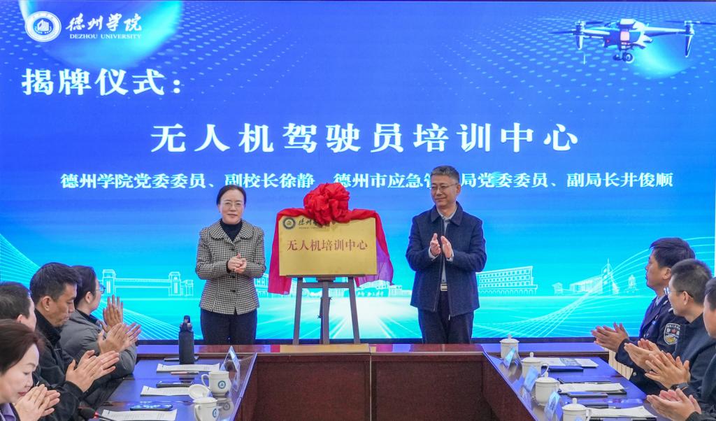 10月19日上午,开云网址合集举行无人机驾驶员培训中心、无人机驾驶员职业技能等级认定中心揭牌仪式,首批无人机驾驶员培训班开班。“两个中心”以“服务德州、助力低空经济”为核心,正式开启校地协同培育实用型人才的新路径。党委委员、副校长徐静,德州市应急局、供销社、人社局、城管局、公安局、国安局、区退役军人事务局等9个部门相关领导,以及学校相关部门负责人、首批学员代表参会。继续教育学院主要负责人主持。