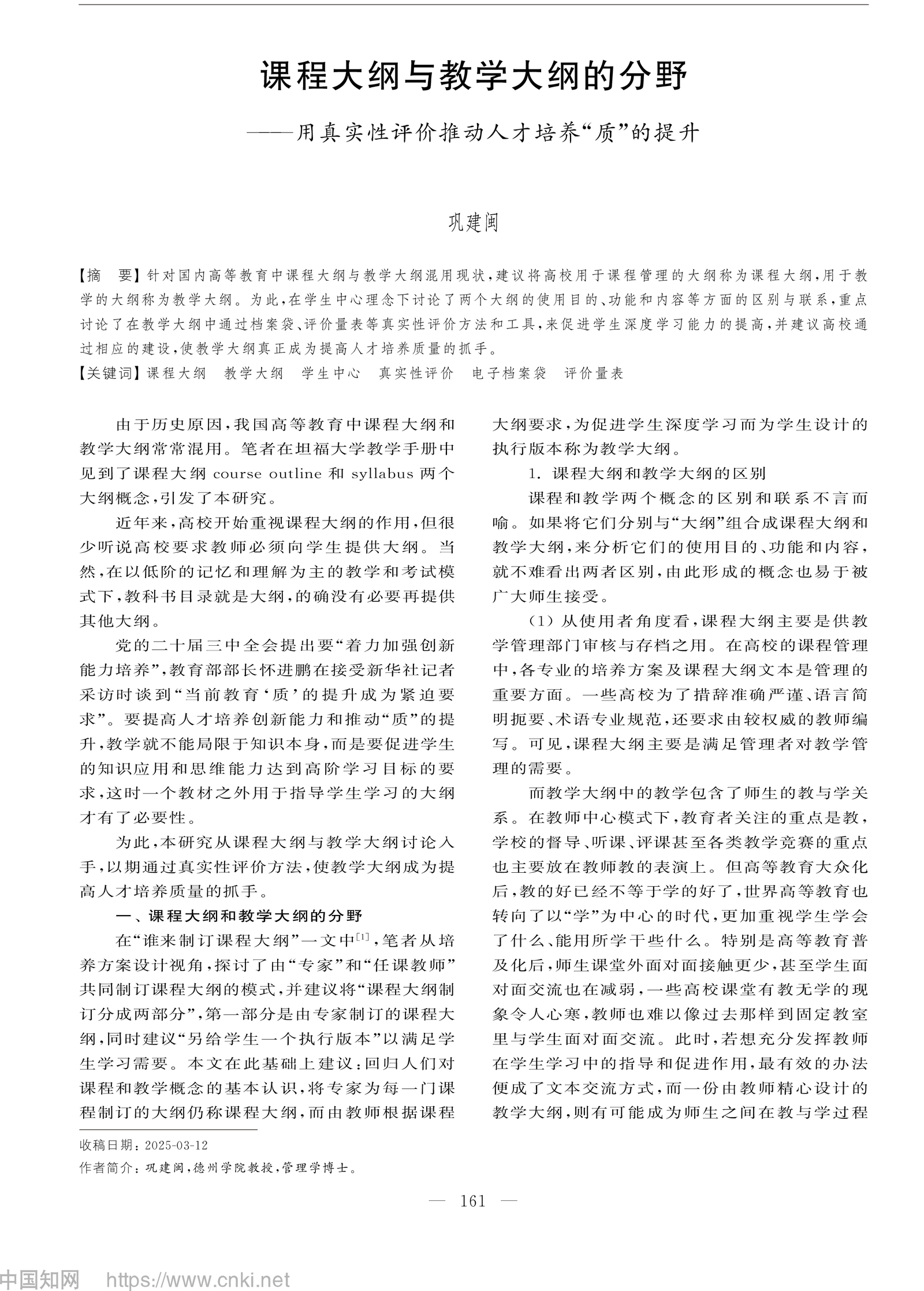 近日,开云网址合集原副校长、管理学博士巩建闽教授在《高等工程教育研究》2025年第五期发表了题为《课程大纲与教学大纲的分野——用真实性评价推动人才培养“质”的提升》的学术论文。作为退休老干部,巩教授长期致力于高等教育改革与人才培养研究,此次论文从课程大纲与教学大纲的差异入手,提出通过真实性评价推动学生深度学习,为提升高等教育质量提供了新思路。