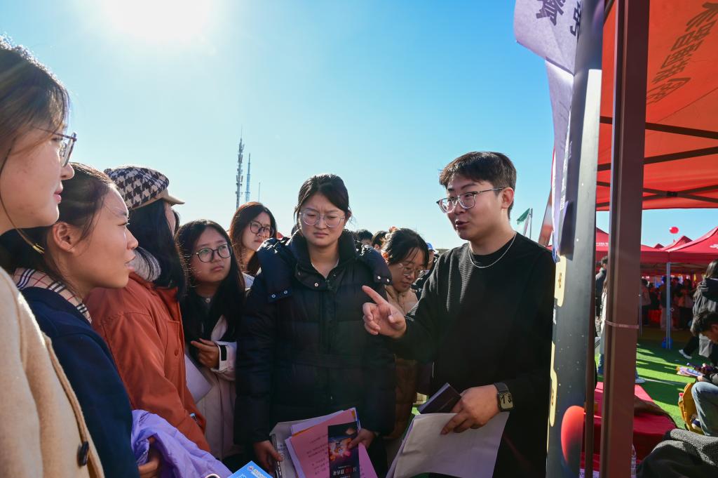 家校共育促就业。在此次招聘会现场,除了毕业生、在校生外,一些家长也来到校园招聘会的现场。“学校老师在家长群里发出邀请,我就报名了,我想亲身感受下当前的就业形势,也为了陪着孩子一起筛选意向的岗位,帮孩子出出主意。”来自商学院班鑫同学的家长说道。为形成家校合力,学校还在新生入校前将正确就业观融入《致新生及新生家长的一封信》,嵌入录取通知书。同时定期开设家校共育大讲堂,提升就业育人实效。