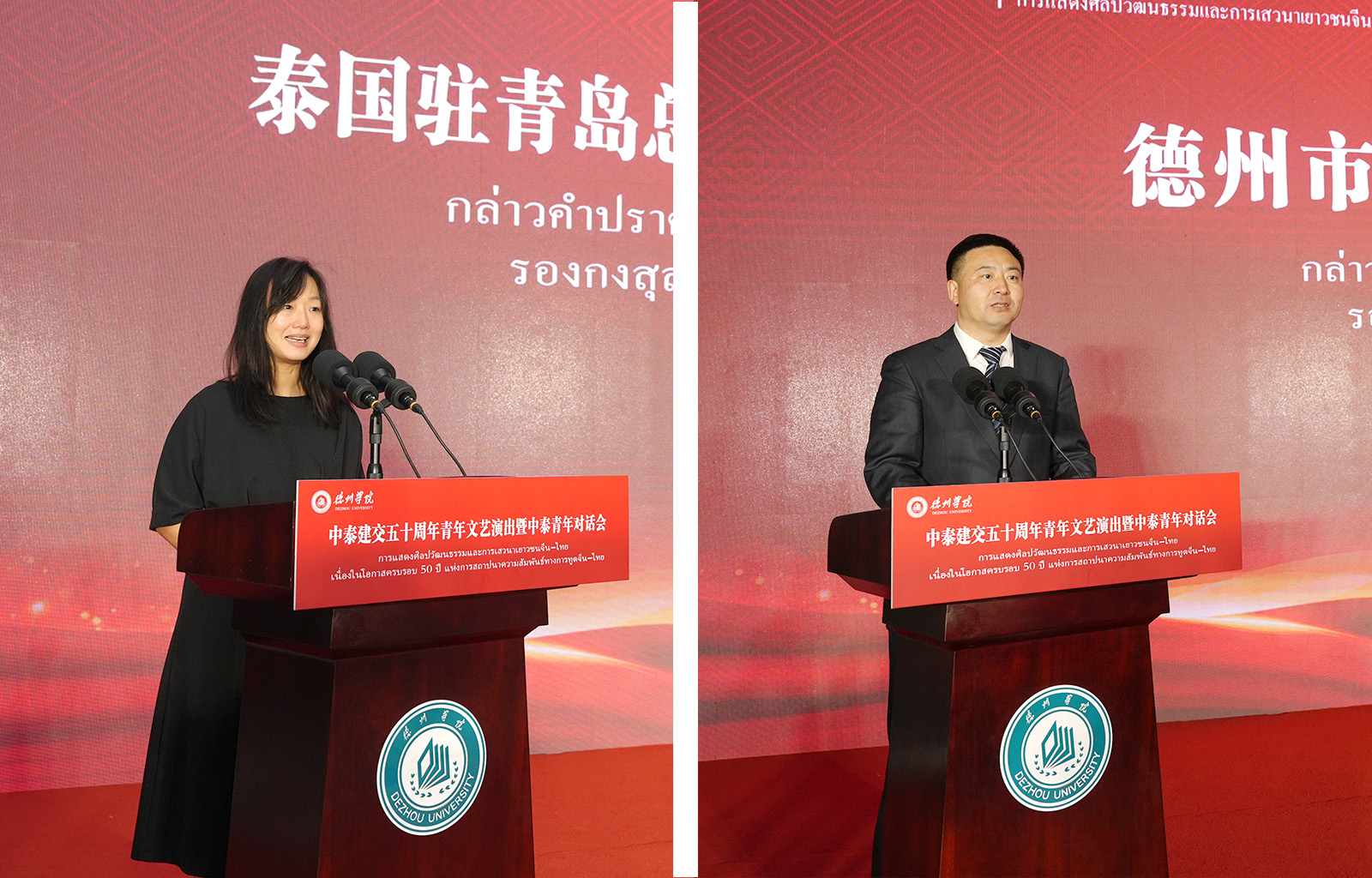 金清清在致辞中高度评价了中泰两国在各领域的合作成果,她期待通过此次活动,同学们在开云网址合集的泰国角尽情地、有趣地体验和享用这个空间,促进两国人民的交流,加深“中泰一家亲”的友好情谊。陈海明在致辞中指出,青年交流活动,正是为了赓续传统,让中泰友好的接力棒在一代又一代青年手中稳稳传递。他希望通过此次活动,进一步推动德州与泰国各地在多领域、各层次的交往,建立更紧密联系,共同为中泰友谊万古长青注入青春智慧与力量。