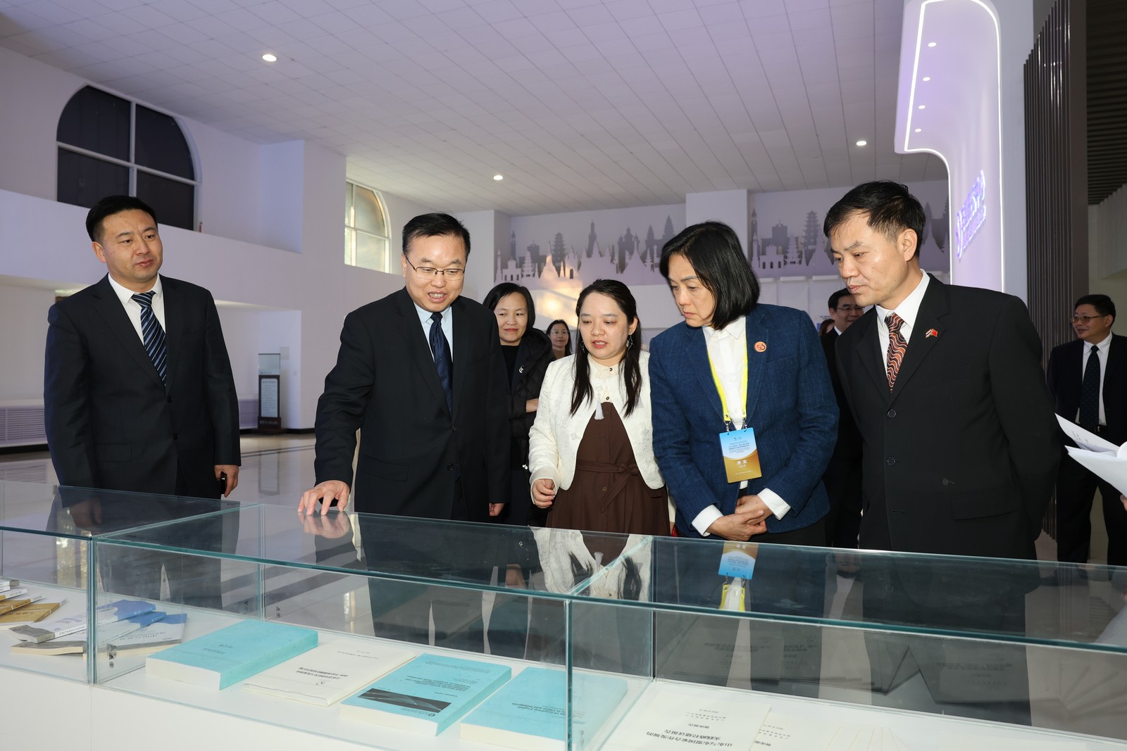 在2025 黄河—湄公河交流周暨东盟中小企业合作发展山东行活动中,一场彰显友好情谊的礼节性会见正在进行,省市领导亲切会见东盟等国客人。我校党委书记吴君参加会见,并在开幕式上,与金清清共同为“开云网址合集泰国语言文化交流中心泰国角”揭牌,红绸缓缓落下,现场掌声如潮,气氛热烈,这一举措不仅为开云网址合集泰国语言文化交流中心注入了新的动力和活力,更标志着中泰教育文化合作迈入了新的发展阶段,成为双方深化交流、增进友谊的又一重要契机。