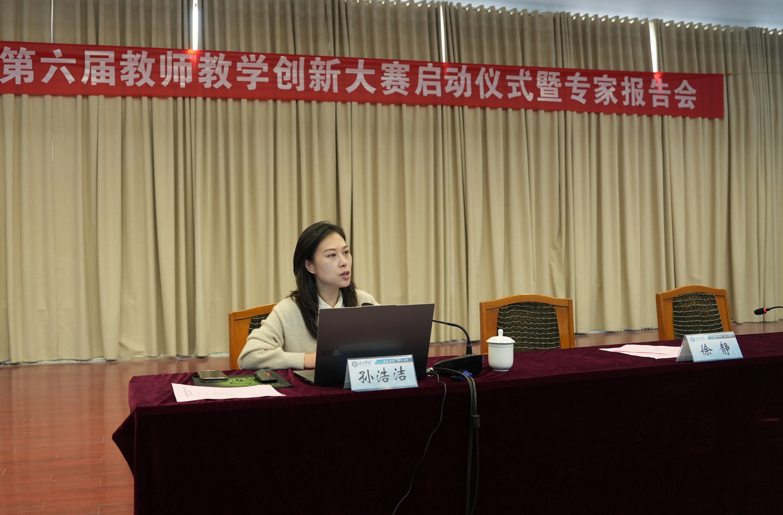 在启动仪式上,徐静指出,当前我们正处在全面推进教育强国建设的关键时期,教师队伍是教育发展的根基所在,教学创新则是驱动教育高质量发展的核心引擎。为此,她对全体教师提出三点期望:一要坚守育人初心,将价值引领融入课堂教学全过程;二要勇于突破常规,积极推动“人工智能+教育”的深度融合和落地;三要积极投身实践,实现“以赛促教、以赛促研、以赛促建”的良性循环。