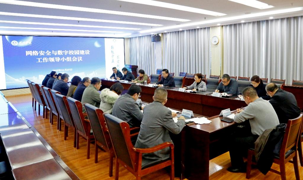 11月27日下午,网络安全与数字校园建设工作领导小组会议在二楼报告厅召开,党委副书记、校长赵长林出席会议并讲话,会议由党委委员、副校长徐静主持。