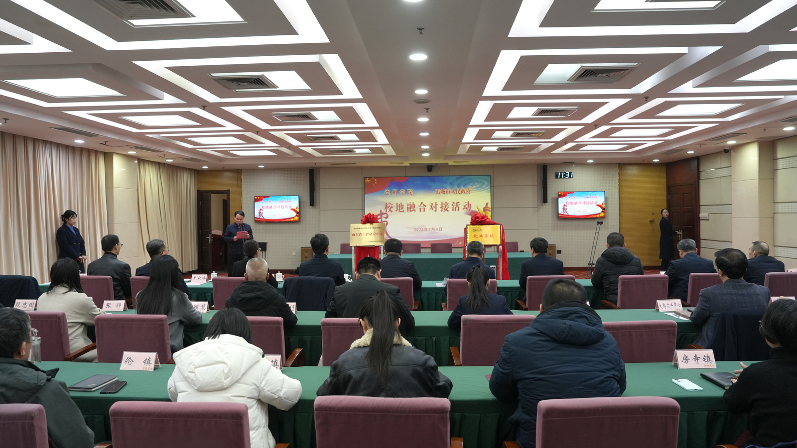 一年之计在于春。2月4日,正值立春时节,学校与禹城市政府校城融合对接签约暨揭牌活动在禹城市举行。校党委书记吴君,党委委员、副校长李甲亮、蒋涛涛;禹城市委副书记、市长王成,市委常委、副市长王法宗,德州高新区党工委副书记、管委会副主任、禹城市政府党组副书记白希瑞出席活动。活动由白希瑞主持。