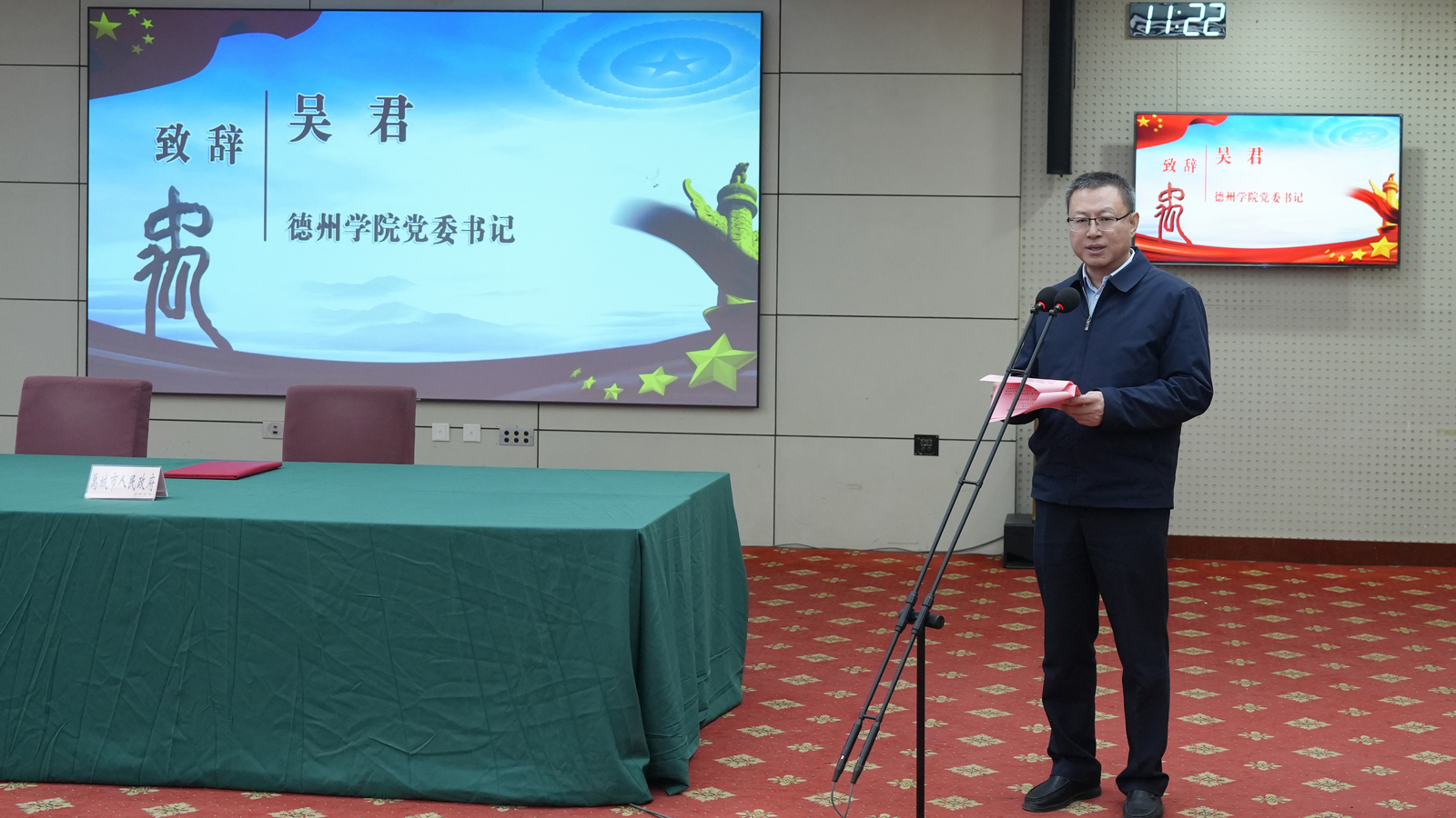 吴君代表学校向禹城市委、市政府及社会各界对学校发展的支持与帮助表示感谢,介绍了学校发展沿革及办学成就。他指出,学校始终立足服务地方,围绕区域产业需求,持续优化学科专业布局,精准构建与地方经济契合度高的学科体系。高度重视高层次人才引育,着力打造结构合理、创新能力强的优质教学科研团队,人才支撑力不断增强。深化校企协同创新,与行业企业共建高水平科研平台及产业学院,有效推动科研成果转化应用,服务区域经济社会发展能力持续提升,践行地方高校责任担当。吴君分享了学校在产业服务、人才供给、技术攻关等领域服务禹城的实践成果,希望校城在聚焦产业需求、筑牢人才支撑高地,强化科研赋能、激活创新发展动能,拓展合作维度、构建协同发展生态等方面凝聚共识、汇聚资源、互利共赢、共谋发展,为服务地方高质量发展奠定坚实基础。