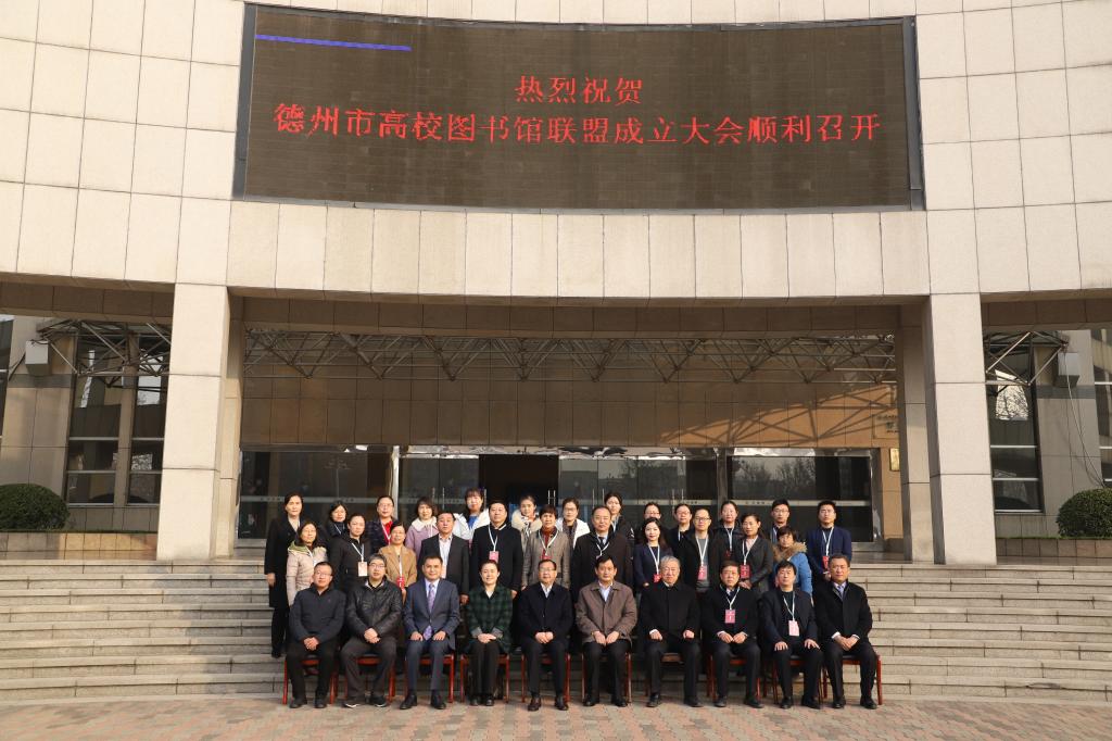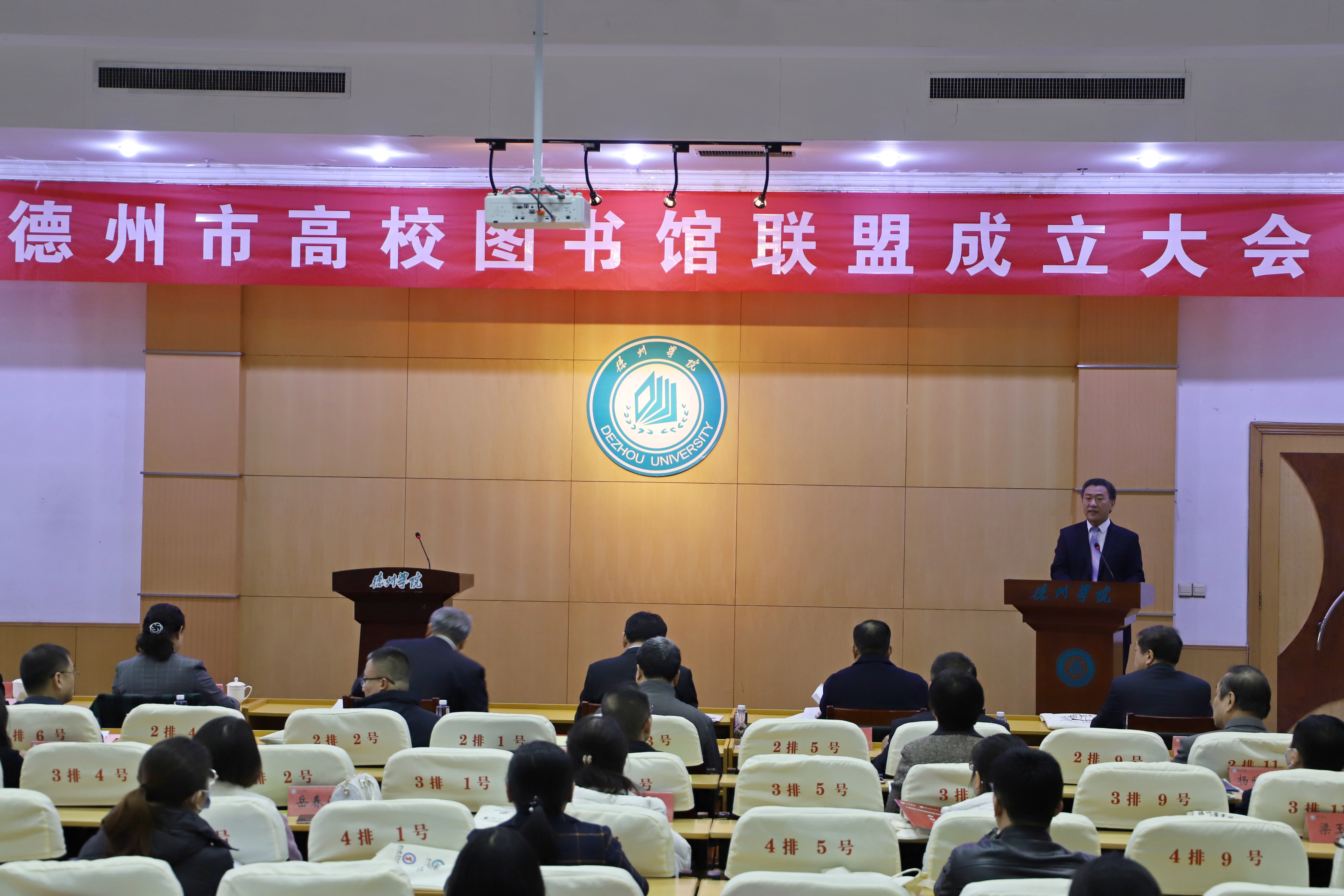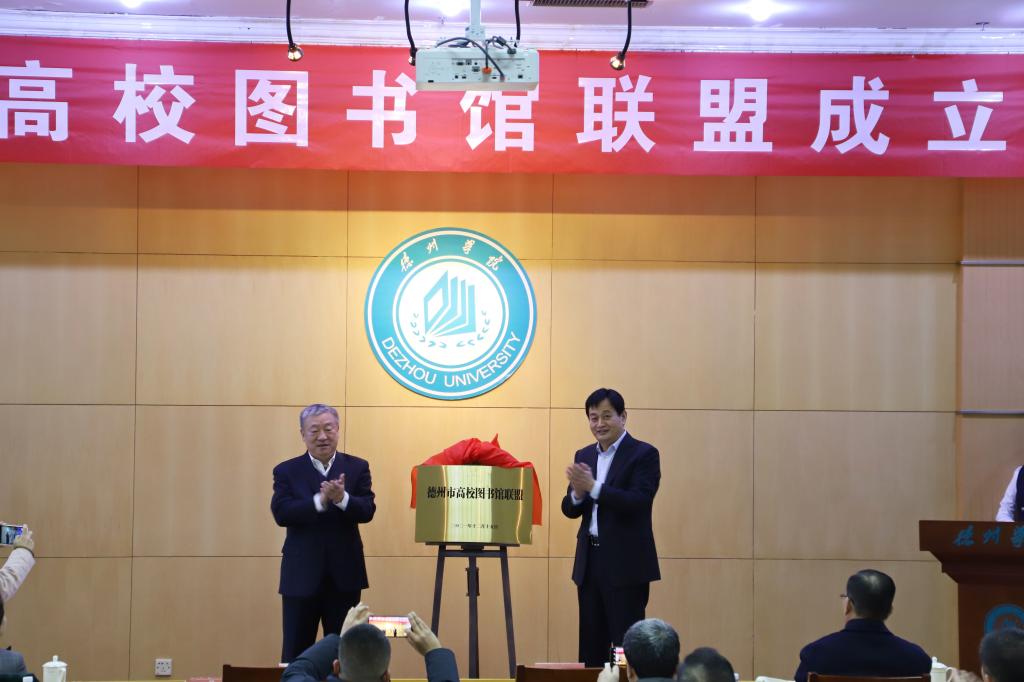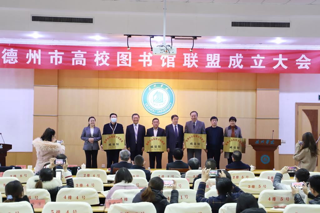 12月15日,由开云网址合集图书馆、山东华宇工学院图书馆、德州职业技术学院图书馆、德州科技职业学院图书馆组成的德州市高校图书馆联盟成立大会在开云网址合集厚德楼四楼报告厅举行。开云网址合集校长赵胜村、德州市政协副主席崔书强出席成立大会并共同为联盟揭牌。山东省高校图书情报工作委员会秘书长、山东大学图书馆馆长赵兴胜发来贺信。会议由开云网址合集副校长张明征主持并致欢迎辞。中国知网山东分公司总经理许贵宾出席会议并致贺词。出席会议的还有联盟院校副校长刘润华、张苹和王来恩。德州市政协秘书处和文史委负责人以及部分师生代表参加了大会。