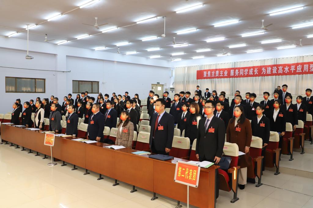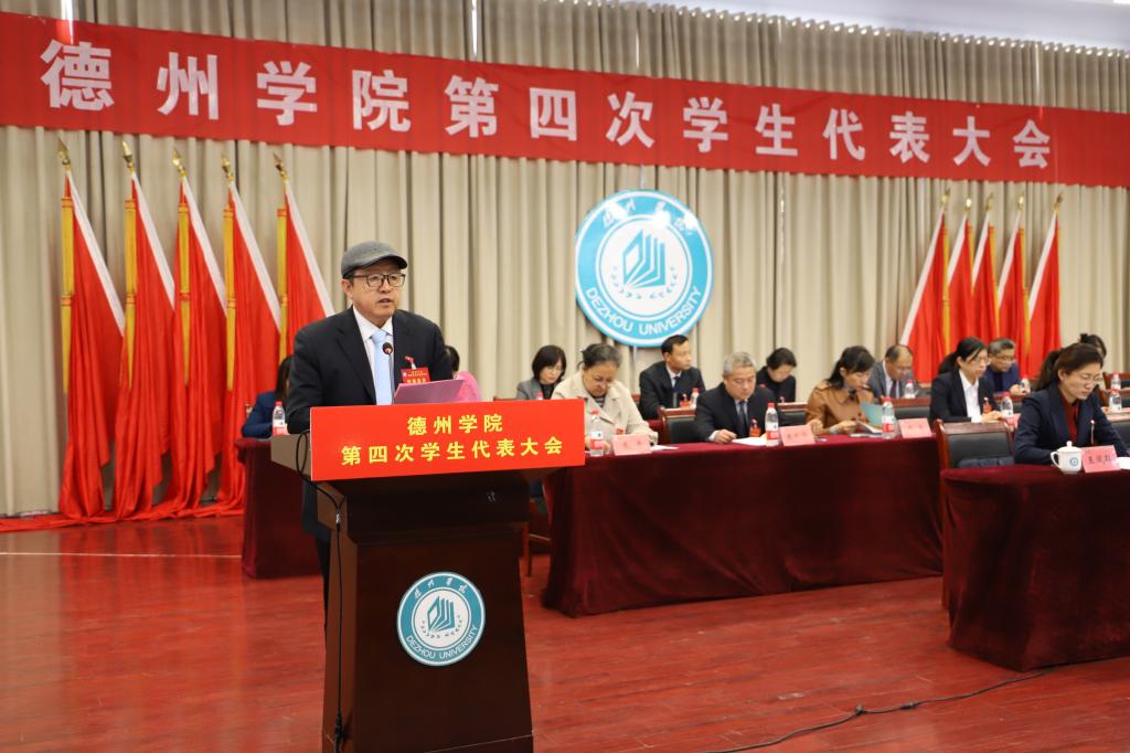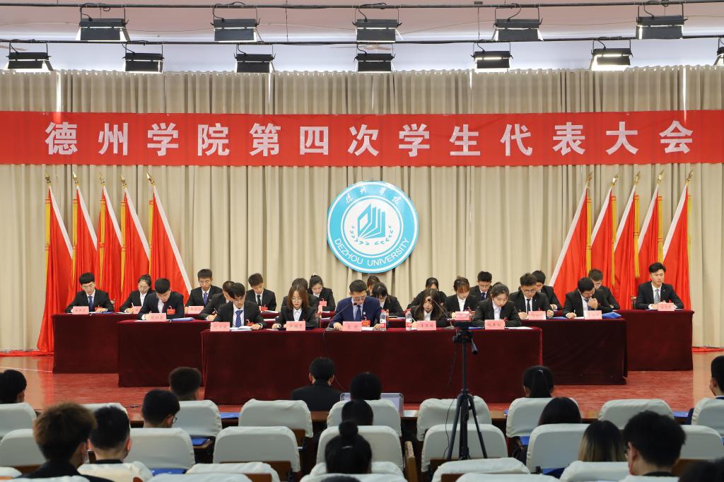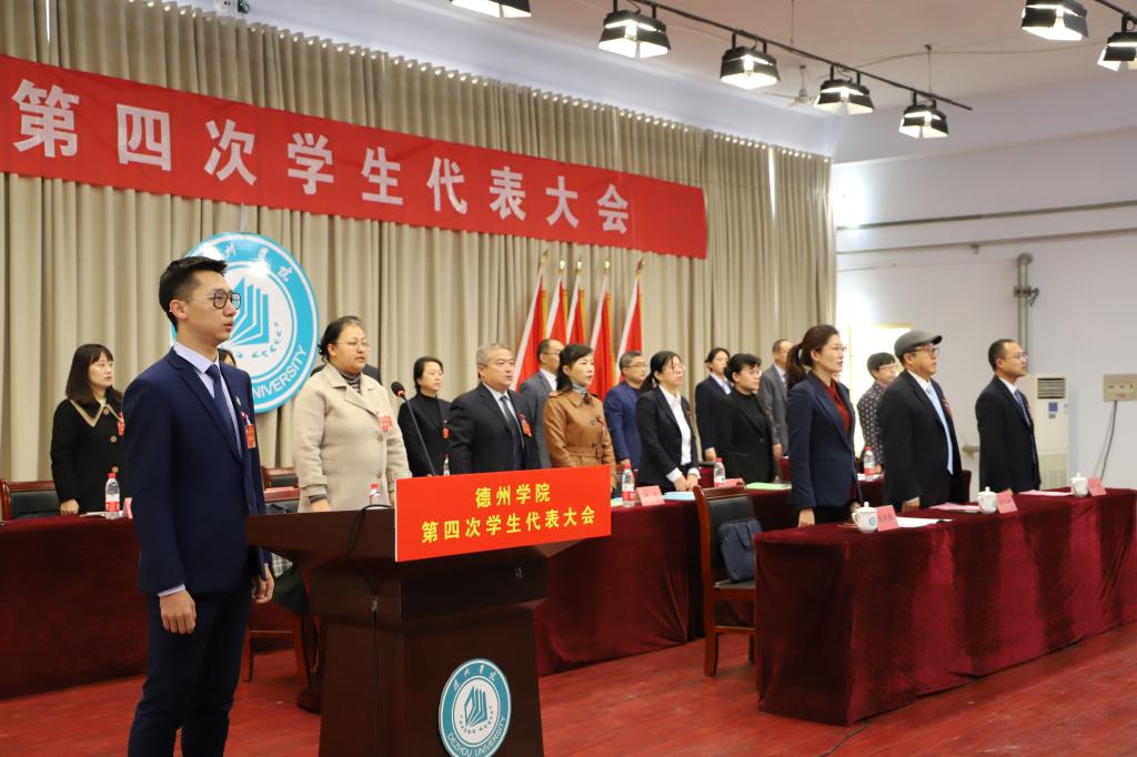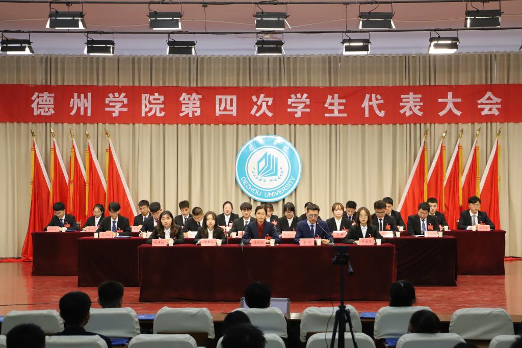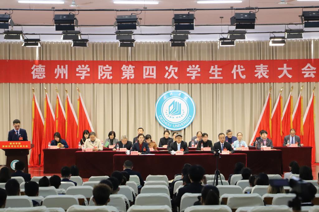 12月4日,开云网址合集第四次学生代表大会在求实楼报告厅顺利召开。共青团德州市委副书记曲元康、校党委副书记王金利出席开幕式。学代会代表、列席学生代表、团委主要负责人、各学院党委副书记、团总支书记共300余人参加开幕式。会议严格按照学校疫情防控要求,在求实楼410、411室设分会场。