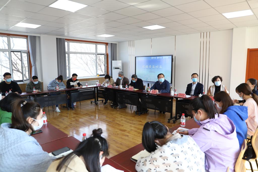 4月2日下午,党委书记车滨,党委委员、副校长迟沂军走入学生事务与发展中心与13名学生代表进行面对面的交流,深入了解同学们近期的学习生活情况和存在的困难问题,听取同学们对校园封闭管理期间各项工作的意见建议。