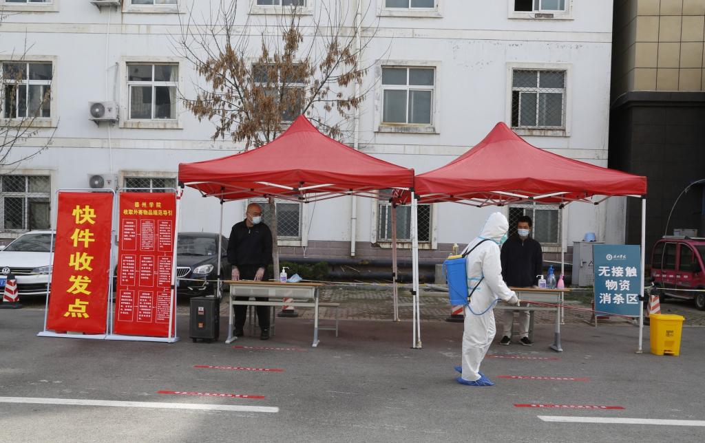 期间,在学校西门口无接触物资消杀区、快件收发点,对快件接收和发放进行了全流程模拟演练。全部演练流程严格按照省21条措施、15条指南的要求开展,演练过程完整、各环节衔接紧密,达到了预期的效果。