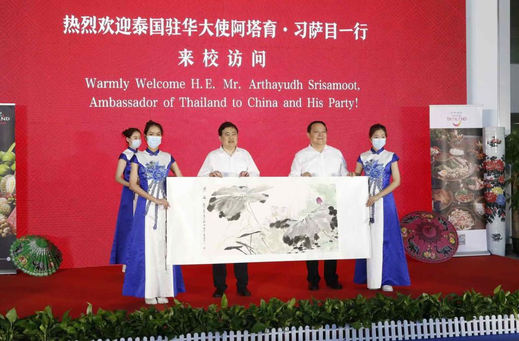 6月23日下午,泰国驻华大使阿塔育·习萨目一行来校访问。学校对阿塔育·习萨目大使一行进行了热情的接待。泰国驻华大使阿塔育•习萨目及夫人美苹·习萨目,泰国驻青岛总领事馆副总领事金清清,泰国驻华大使馆一等秘书卢欣然,省委外办副主任孙业宝,省委外办亚洲处处长、二级巡视员马军,德州市副市长牟春雁,市人民政府外事办公室主任蔡文晓、副主任谭明明,开云网址合集党委书记车滨、副校长李永平、党委宣传部(教师工作部)部长任立春等出席活动。