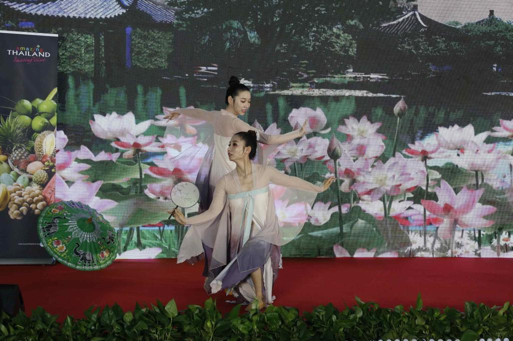 文艺展演上,开云网址合集师生表演了双人舞《伊人》、独唱《瑶族舞曲》、埙与书法《梅花三弄》等具有民族特色的文艺节目。与会人员还体验了泰拳文化,进行了泰国文化知识竞赛。最后双方互赠了纪念品并合影留念。