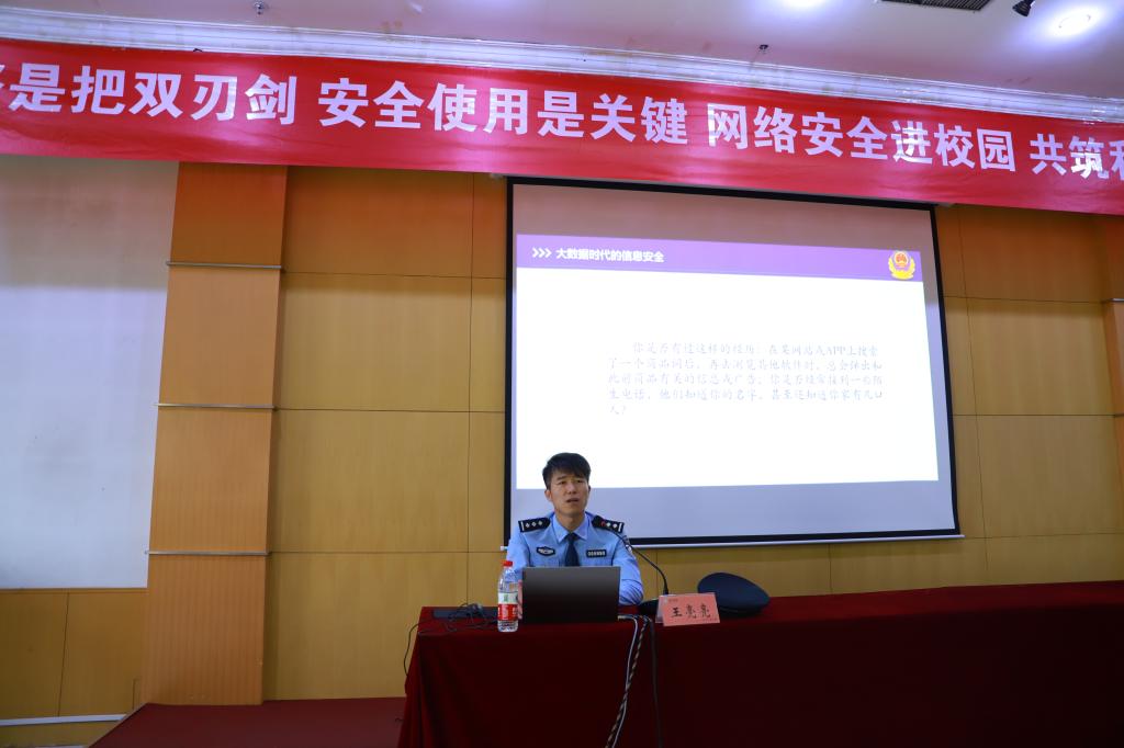启动仪式结束后,德州市公安局反电诈中心副大队长王亮亮以《大数据时代的信息安全》为题,开展校园防范电信诈骗、预防网络违法犯罪知识讲座。