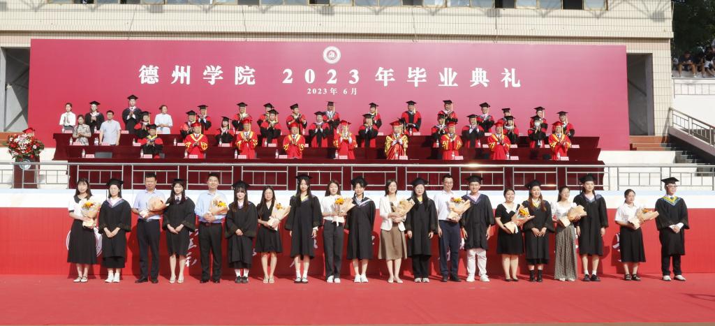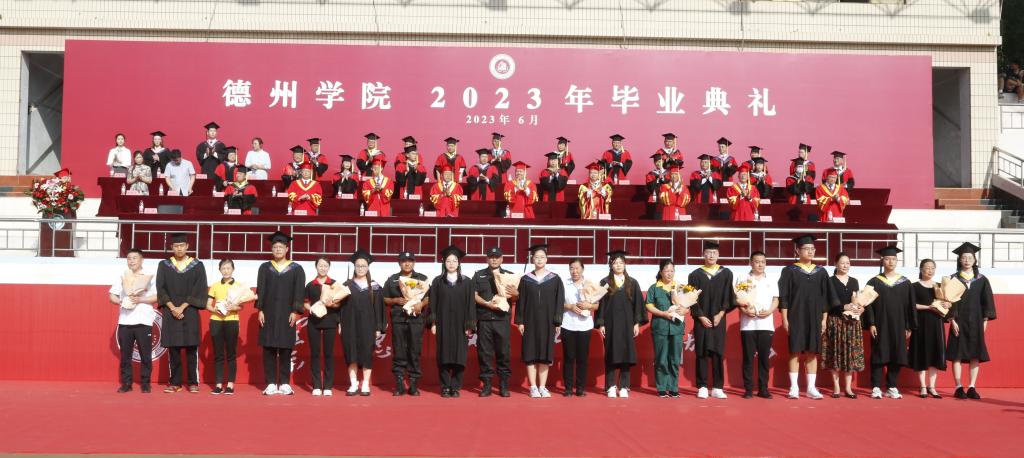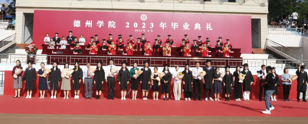 毕业典礼现场气氛热烈,学校为毕业生准备了精彩的暖场节目,以视频、MV、现场歌曲演唱的形式,回顾了大学生活的点点滴滴,春花夏蝉,秋月冬雪,一幕幕德院美好回忆在此刻翻涌。歌曲《New boy》《星辰大海》《起风了》《同桌的你》《萱草花》等节目,真情流露,烘托出离别不舍的氛围。