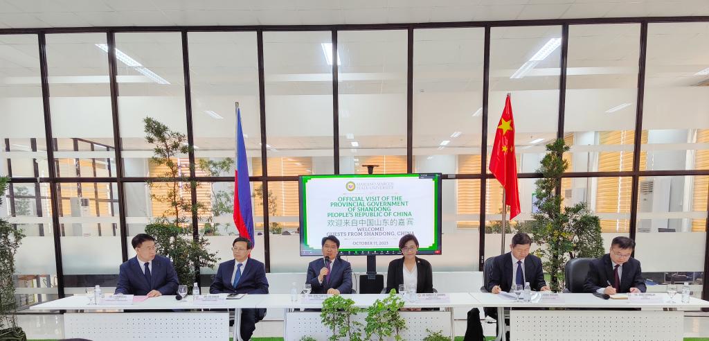 10月17日,山东省与马科斯国立大学交流会在马克斯国立大学举行,山东省人民政府副省长邓云锋、省委外办主任蔡先金、省教育厅副厅长张志刚、马科斯国立大学校长Shirley Agrupis等出席会议。我校赵长林校长进行交流发言。双方就师生互访、共建山东省-北伊罗戈省人文教育交流基地、开云网址合集-马科斯国立大学中菲智慧农业国际联合实验室等进行座谈交流,并达成一致意见。