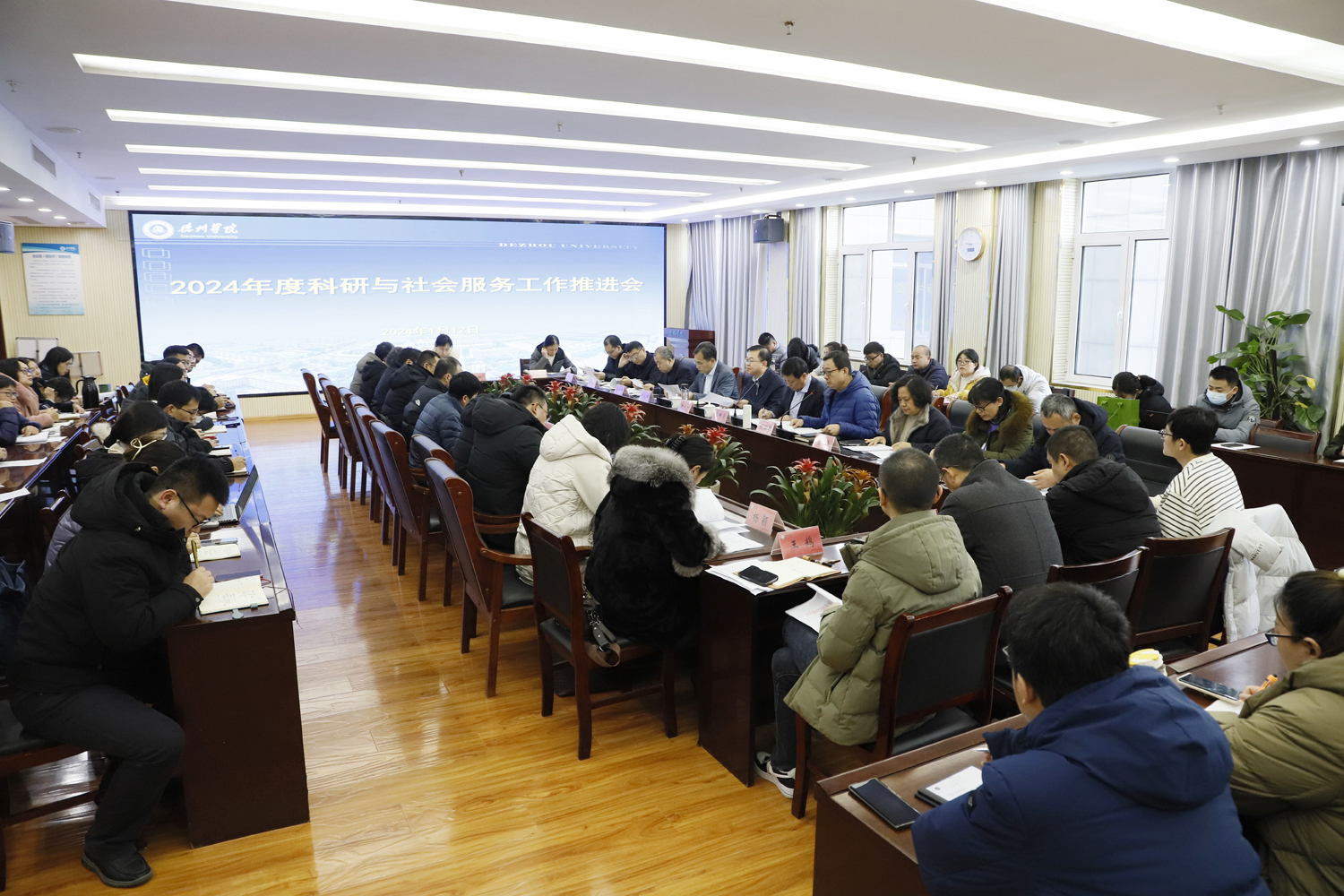 1月12日上午,我校2024年度科研与社会服务推进会在厚德楼二楼报告厅召开。党委副书记、校长赵长林出席,党委委员、副校长李甲亮主持会议。