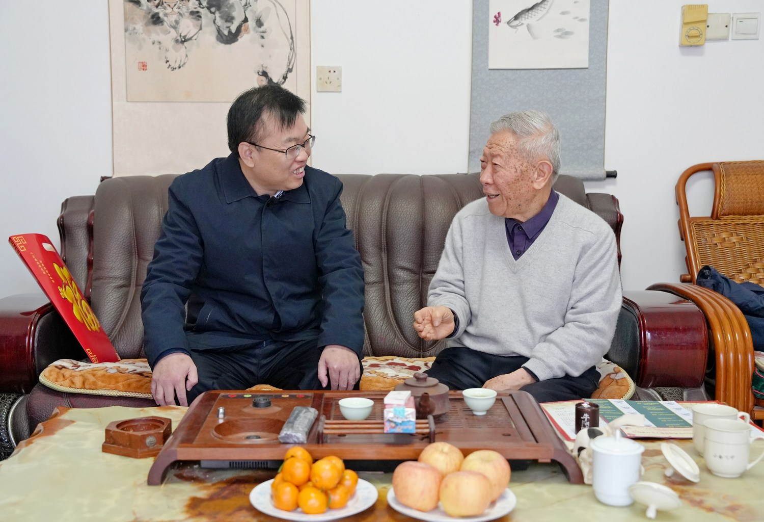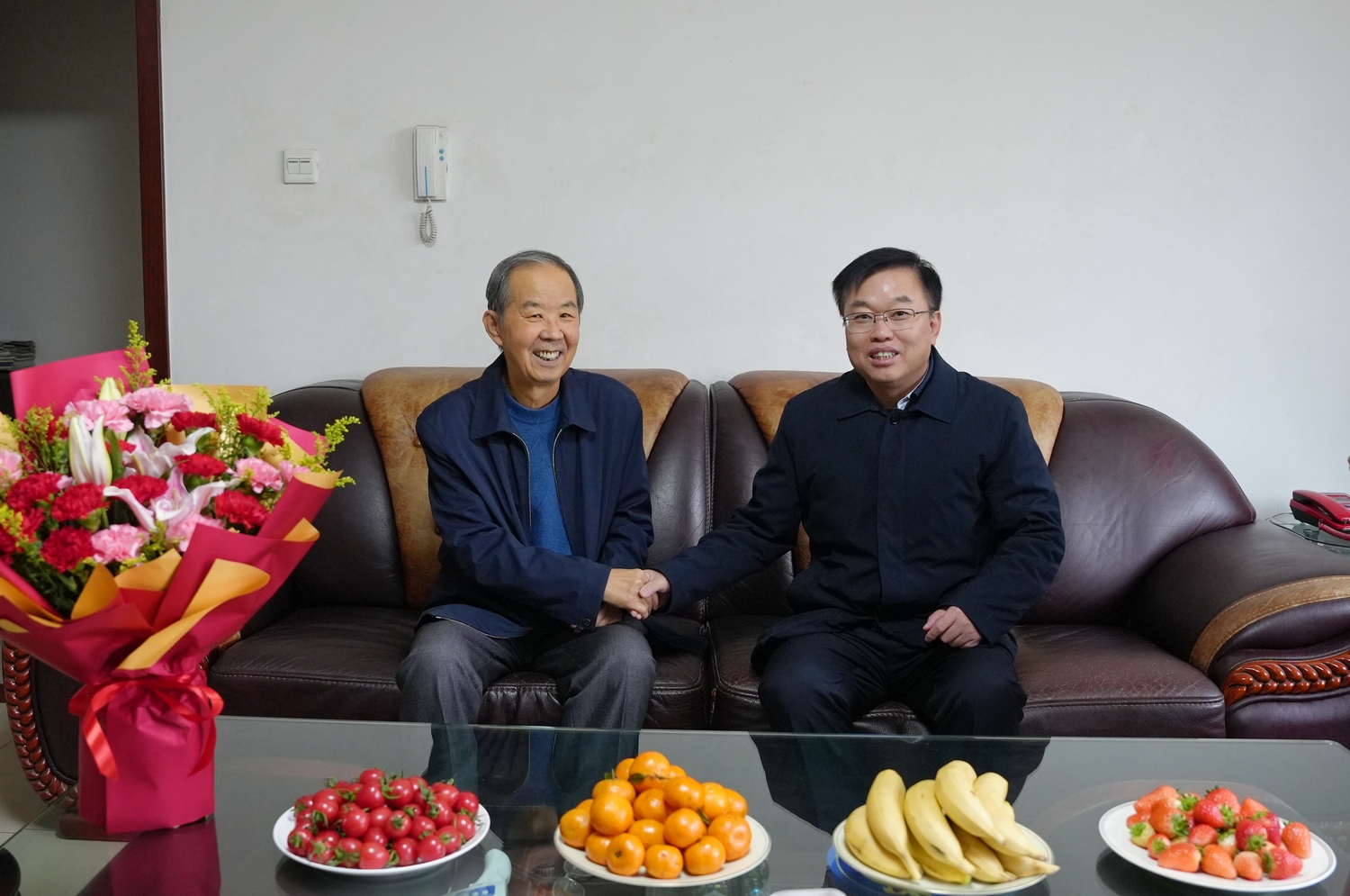 在离退休老同志家中,校领导与老同志们促膝而谈,详细询问了他们的身体状况和生活情况,通报了学校近年来事业发展情况以及学校在人才培养、学科建设、校城融合、国际化办学等方面取得的成绩。感谢老同志们为学校发展打下的坚实基础、作出的重要贡献,并听取了他们对学校发展的意见建议,叮嘱有关部门要用心用情做好服务保障工作。希望老领导老同志保重身体,一如既往关心支持学校发展,为学校发展建言献策。
