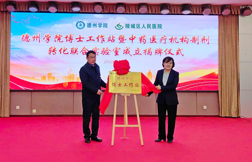 陵城区卫健局、陵城区人民医院、学校合作发展处、医药与护理学院相关负责人和博士教师代表参加揭牌仪式。