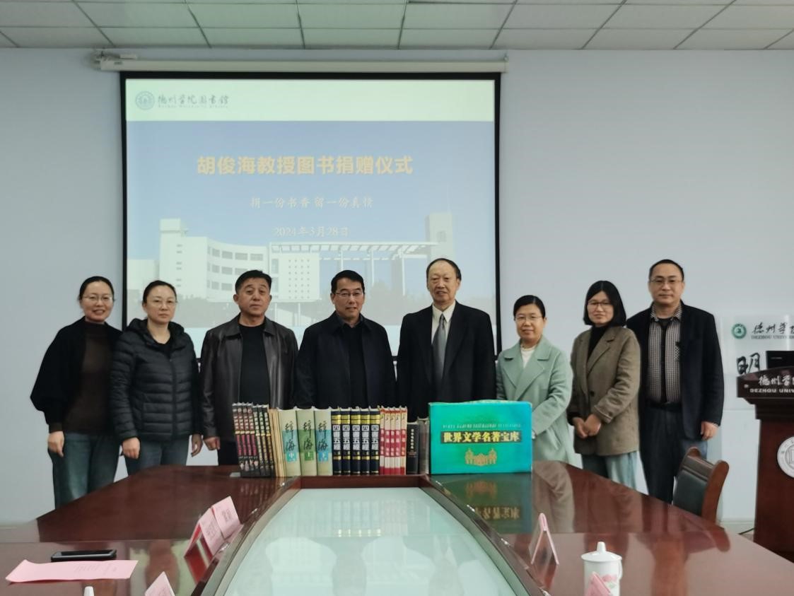 在2024年世界读书日来临之际,3月28日上午,我校退休教师胡俊海教授图书捐赠仪式在图书馆会议室举行。