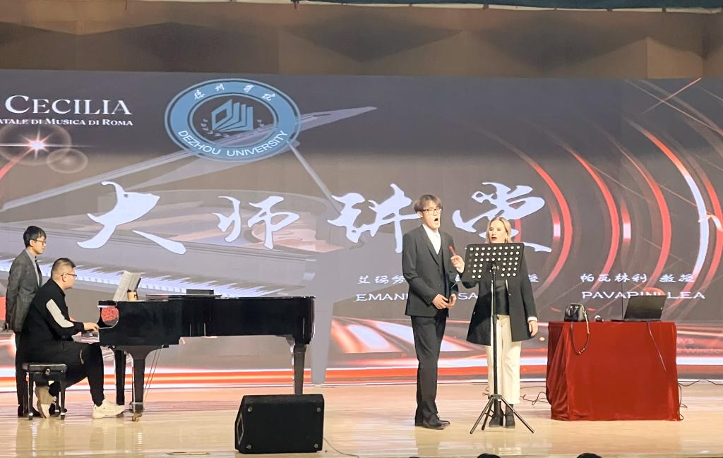 大师课环节更是将此次活动推向了高潮。萨卢奇教授和帕瓦林利教授亲自登台,为音乐学院大三大四的声乐和钢琴专业学生提供指导。他们不仅对学生们扎实的音乐基础表示赞赏,还用自己的意大利音乐教学方式,结合丰富的表演经验,对学生们的演奏和演唱进行了细致的点评与指导。从演奏技巧、呼吸控制到发声技巧和意大利语发音,教授们都给予了学生宝贵的建议,并通过亲身示范帮助学生更好地领悟音乐的精髓。