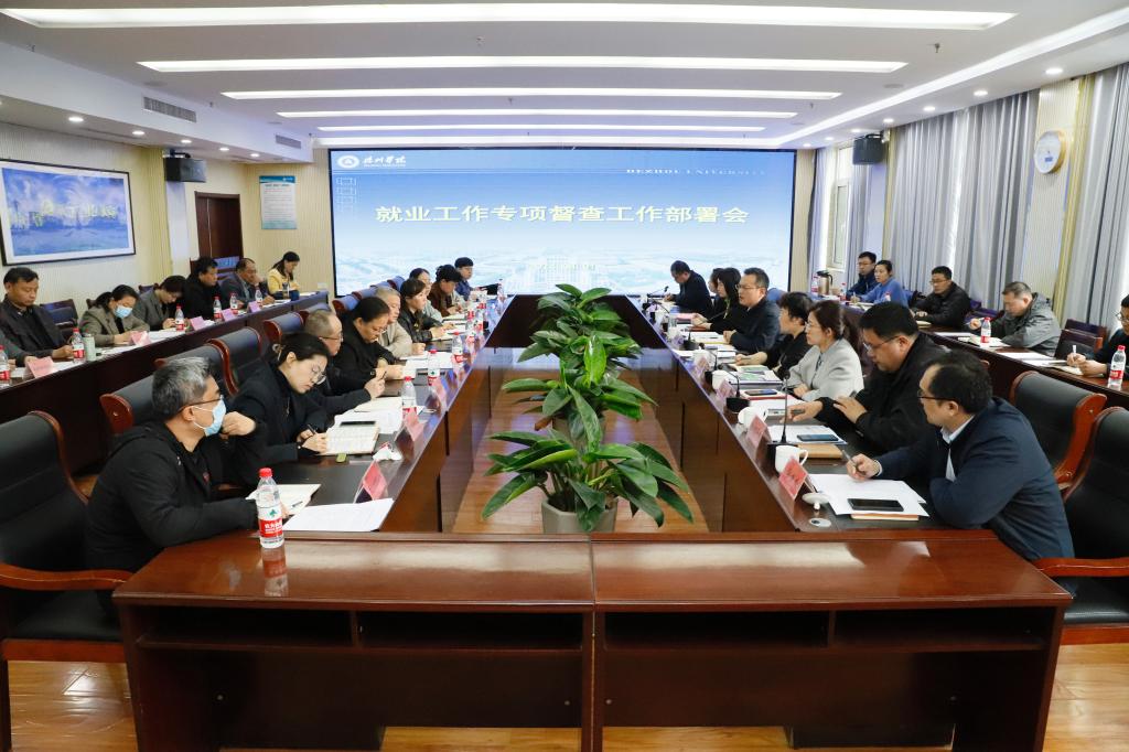 会议指出,开展毕业生就业工作专项督查是深入贯彻落实党中央、国务院和省委省政府关于“稳就业”“保就业”决策部署,确保党委工作安排落实落细的关键举措,是进一步构建完善“大就业”工作格局,强化就业“一把手”工程,调动全校力量促进毕业生更加充分更高质量就业的重要抓手,全校上下要切实提高政治站位,把毕业生就业工作摆在突出位置,以时时放心不下的责任感和紧迫感,进一步加大力度、加快进度,针对性补短板、抓重点、兜底线,切实把这项重大政治任务做实做细做到位。要进一步压实主体责任,严明工作纪律,着力完善毕业生就业工作机制,紧抓服务落地,强化政策宣传,落实工作职责,营造全校统筹联动、共促就业的良好氛围。要抢抓就业关键期冲刺期,严格执行教育部“四不准”“三不得”规定,对违规情况实行“一票否决”并严肃追责问责。