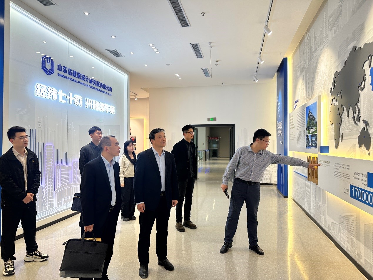山东省建筑设计研究院有限公司规划设计研究所所长徐连捷、副所长于辰龙陪同学校一行人员参观了公司展馆,并组织召开座谈会。