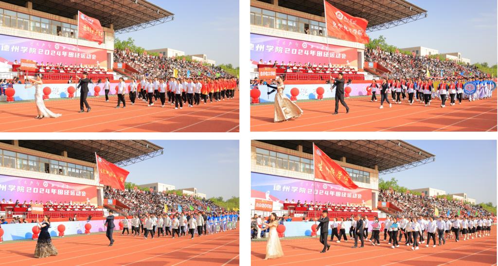 随着激昂的《运动员进行曲》响起,国旗队、军乐队和彩旗队迈着整齐有力的步伐昂首阔步走过主席台。随后,裁判员方队、校机关方队、科研教辅单位方队、各学院运动员方队,以饱满的精神状态依次入场。他们用精心设计的标牌、奋发向上的口号和别出心裁的表演,诠释着德院人聚焦高质量发展,奋力开创高水平有特色国际化应用型大学建设新局面的坚定决心,展示了德院师生守正创新担使命,踔厉奋发勇前行的精神风貌。
