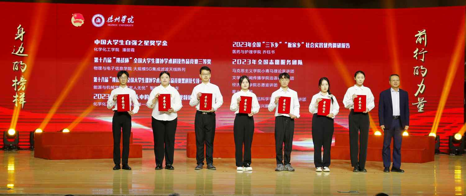 与会领导为荣获全国、全省和学校的先进青年集体和个人颁奖。