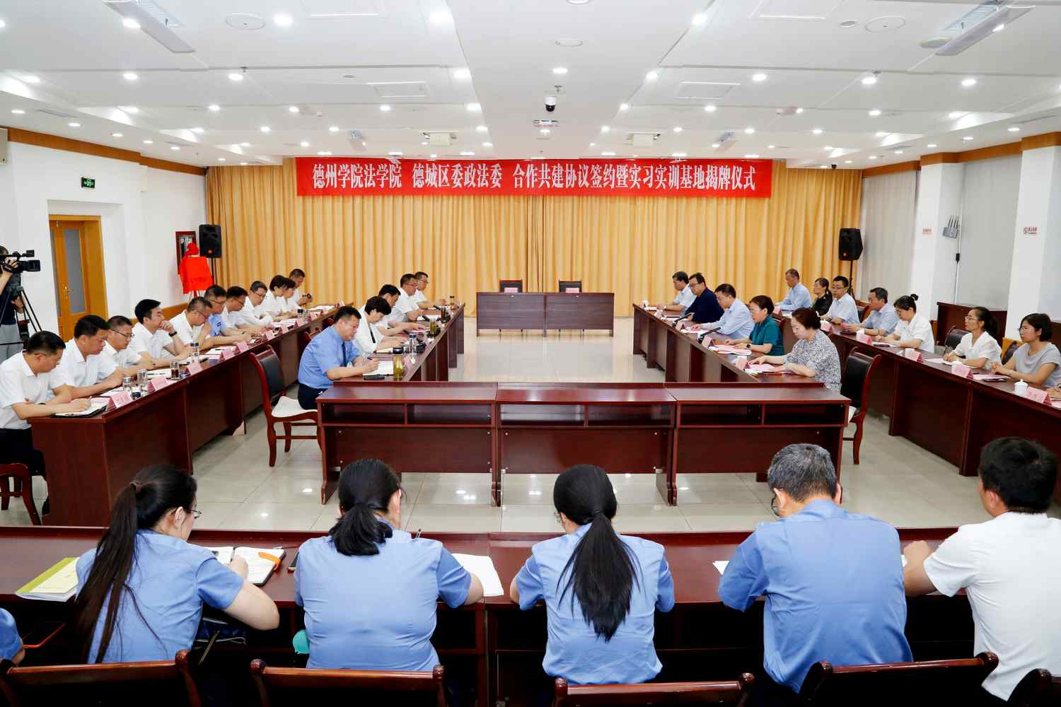 德城区委常委、政法委书记于志新,区人民法院院长孙文中,区人民检察院检察长智广,区委政法委副书记王奎山,区司法局局长田增振,区社会工作部副部长、信访局局长金新雷,德城区各镇街党(工)委书记,学校办公室、教务处、合作发展处、创新创业学院、法学院主要负责人和相关工作人员参加了活动。