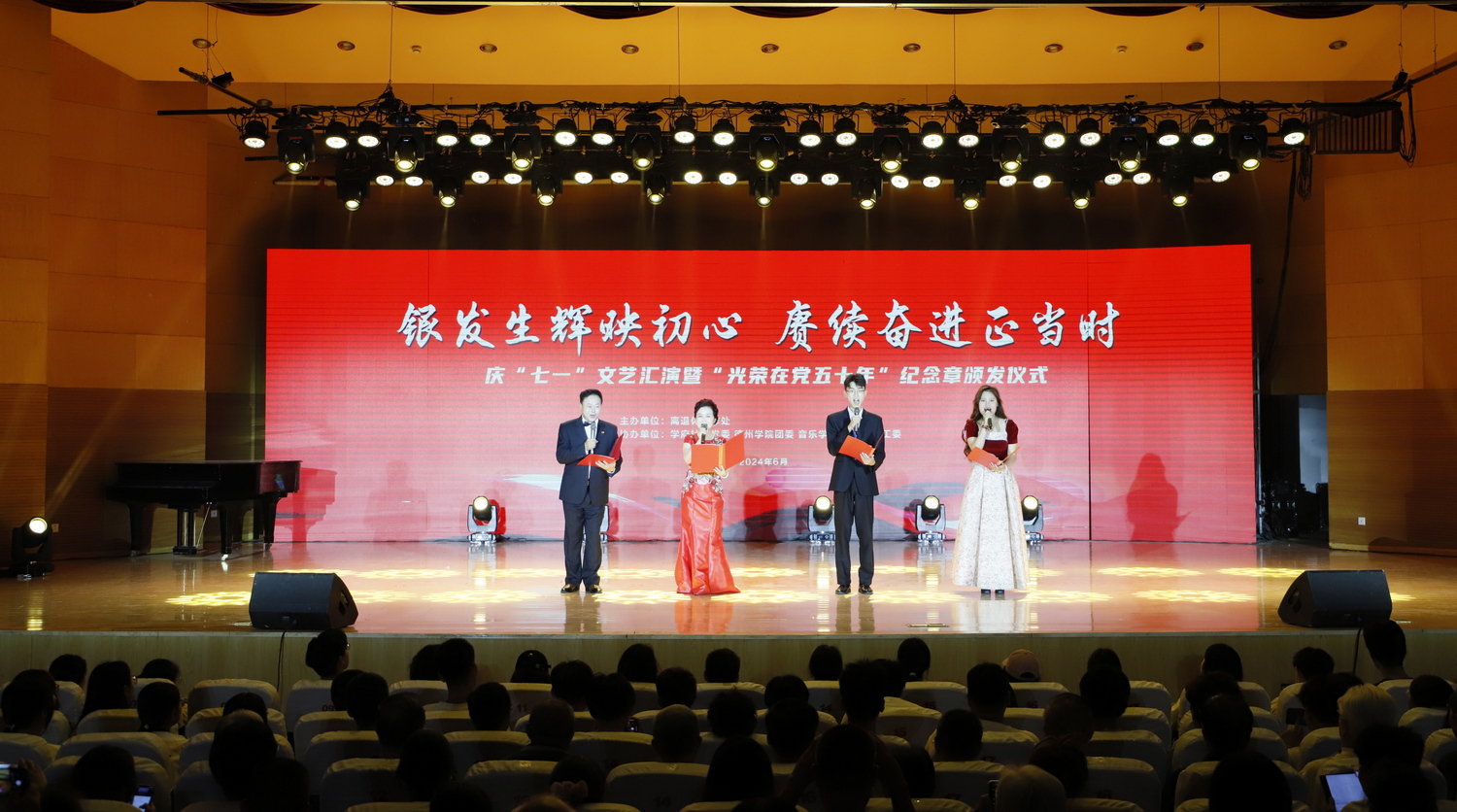 6月19日上午,“银发生辉映初心,赓续奋进正当时” 庆“七一”文艺汇演暨“光荣在党五十年”纪念章颁发仪式在音乐厅举行。校党委书记吴君,党委副书记、校长赵长林,党委副书记张存峰,校关工委主任王金利,退休校领导金清云、贺金玉、杨春喜、刘昭斌、王凤良、荆学松、张明征出席本次活动。