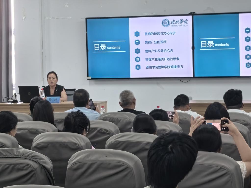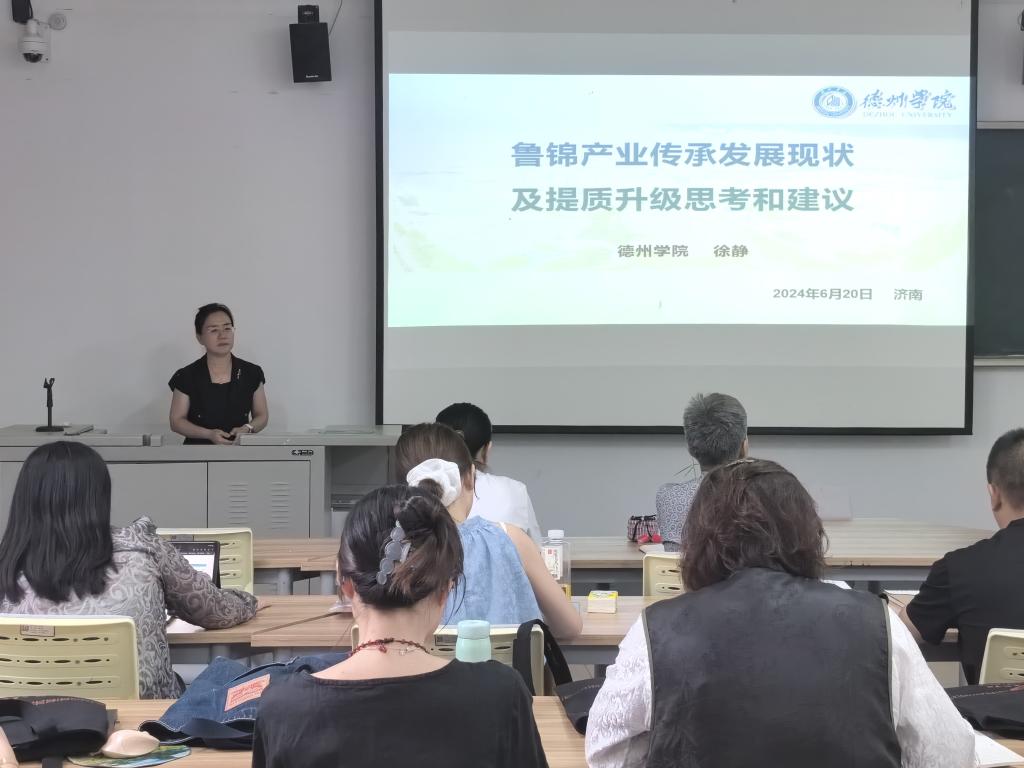 为深入贯彻落实省领导关于推动鲁锦产业高质量发展的指示精神,持续提升鲁锦传承人技能艺能,重塑鲁锦产业优势,加快产业创新发展,6月下旬,由工信厅主办的全省纺织服装产业数字化转型培训(鲁锦专题班)和文旅厅主办“中国非物质文化遗产传承人研修培训计划”鲁锦织造技艺研修班分别在济南开班。校党委委员、副校长徐静教授应邀在培训班上做专题讲座。