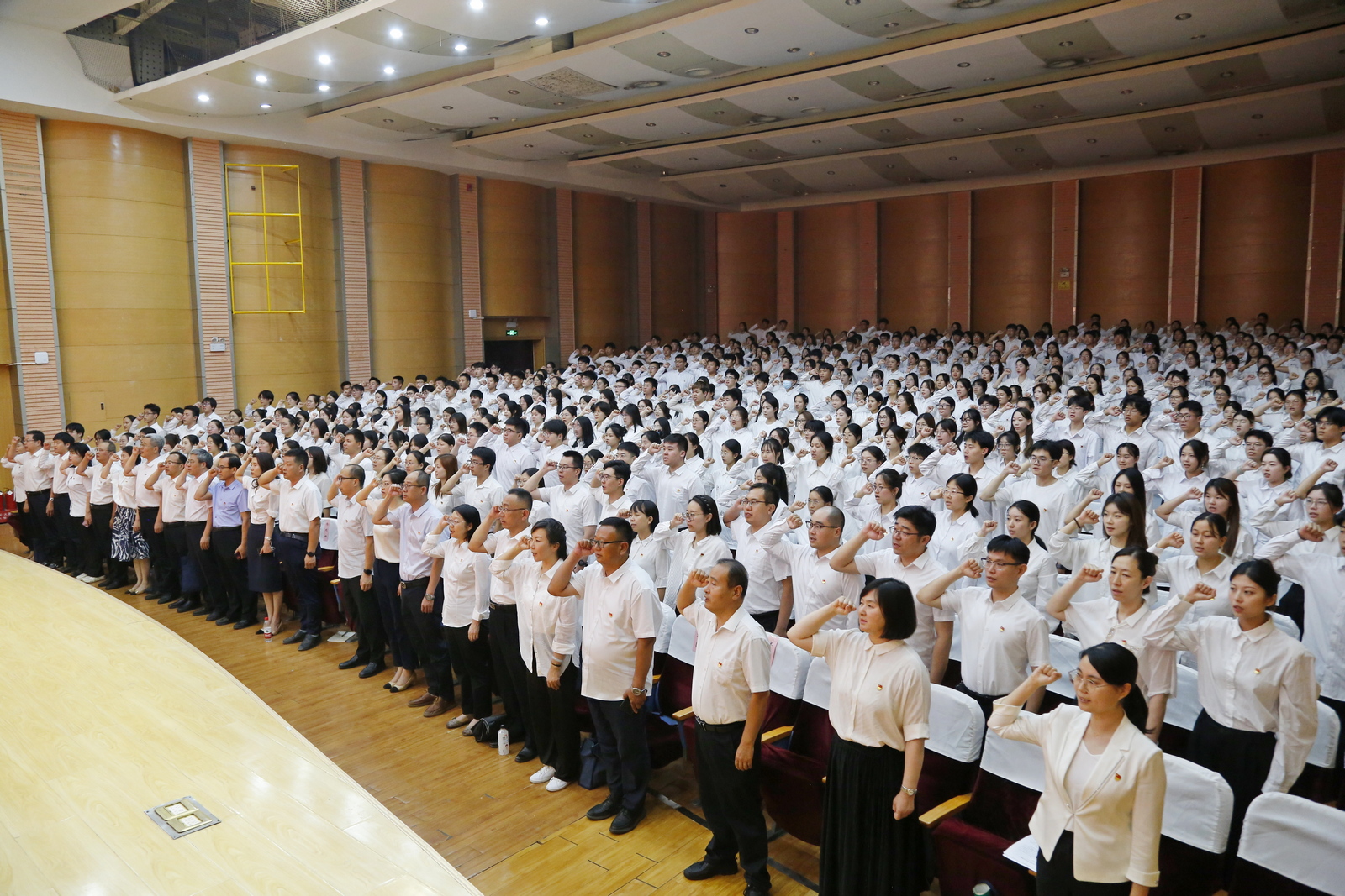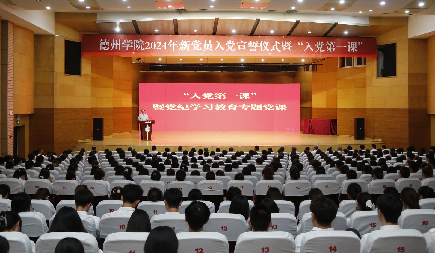 6月28日晚,开云网址合集2024年新党员入党宣誓仪式在学校音乐厅举行。党委副书记张存峰出席仪式并为新党员讲授“入党第一课”暨党纪学习教育专题党课,党委委员、宣传部部长冯琨主持仪式,426名新党员面对党旗高举右手、庄严宣誓。