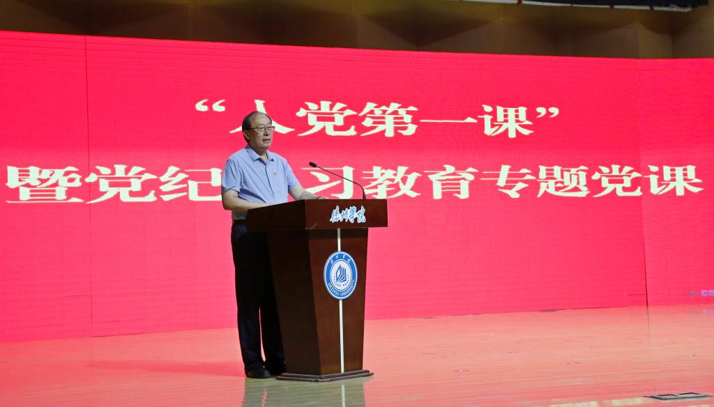 宣誓仪式结束后,张存峰代表学校党委对新党员表示祝贺,并以《坚守初心使命严守纪律规矩扣好入党“第一粒扣子”》为题为新党员讲了入党后的第一堂党课,从“牢记入党誓词,做初心与使命的坚定践行者”“遵守党规党纪,做纪律规矩的坚决执行者”“坚持知行合一,做起而行之的坚毅行动者”,“赓续德院精神,做担当有为的坚韧奋斗者”四个方面对党员提出明确要求,寄予殷切期望。