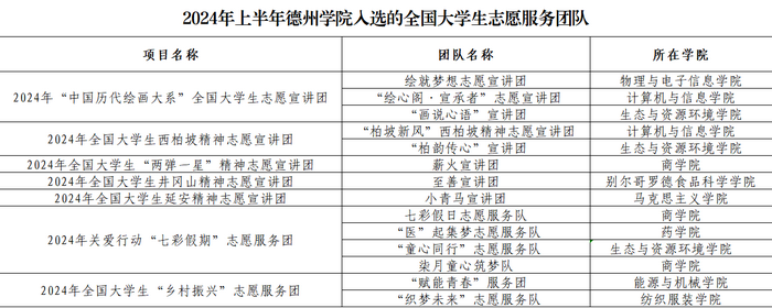 2024年上半年,团中央青年志愿者行动指导中心联合有关单位面向全国高校遴选“中国历代绘画大系”、“两弹一星”精神、延安精神、西柏坡精神等志愿宣讲团和“乡村振兴”、关爱行动“七彩假期”等志愿服务团,经过主办单位对申报团队的审核遴选,截至目前,我校共有14支团队入选全国大学生志愿宣讲团和志愿服务队。未来,我校志愿服务工作将严格落实团中央青年志愿者指导中心、中国青年志愿者协会相关要求,按照服务计划,认真准备服务内容,精心设计服务形式,扎实开展好各类志愿宣讲和服务活动,组织青年学生将专业所学、志愿情怀同社会实践相融合、同大思政课堂相衔接,不断彰显为中国式现代化挺膺担当的青春篇章。