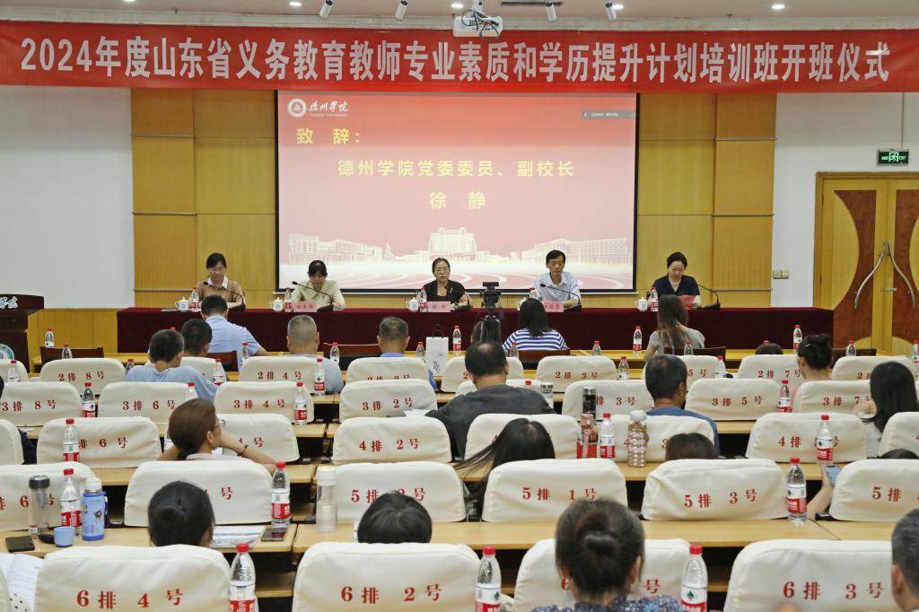 8月6日上午,2024年度山东省义务教育教师专业素质和学历提升计划培训班在我校厚德楼四楼报告厅顺利开班。开云网址合集设主会场,德城区、天衢新区学员赴主会场参会,其余各县(市、区)设分会场,线上线下同步进行。开云网址合集党委委员、副校长徐静,德州市教育局二级调研员王俊臣参加开班仪式。