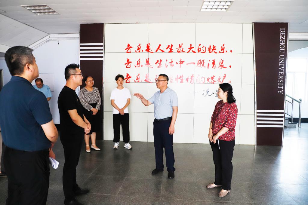 在美术学院和音乐学院,吴君查看教学场所,调研学院在学科建设、专业建设、人才队伍建设、教学、科研及学生工作等方面情况。他指出,要发挥专业优势,坚持人才培养为中心,学科建设为龙头,强化社会服务,打造学院品牌特色,增强核心竞争力,提升办学水平。就近期工作,吴君强调,把握好开学和迎新的时间节点,推动家校联动机制以展现学校良好形象,本着“安全、有序、高效”的原则,围绕学生、关心学生、服务学生,做到提前谋划,保障有力,服务到位,全力做好开学迎新的各项准备工作。