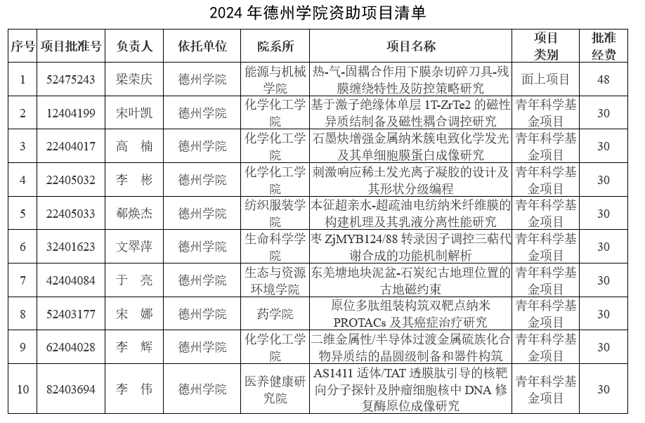 近日,国家自然科学基金委发布了《关于2024年国家自然科学基金集中接收申请项目评审结果的通告》,我校共有10项基金项目获得立项资助,立项数同比增长66.67%,其中面上项目1项,青年科学基金项目9项,获批直接经费318万元。