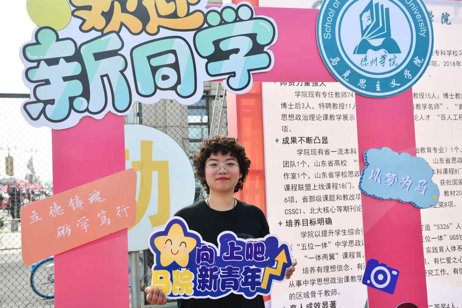 物理与电子信息学院:以学生为中心,坚持“学工+专业”融合理念,设立党员先锋岗、考研光荣榜,反诈宣传点位、家长寄语信箱,亮相3D打印机、智能互动机器人,展示物理学家名人名言等,以迎新促育人。